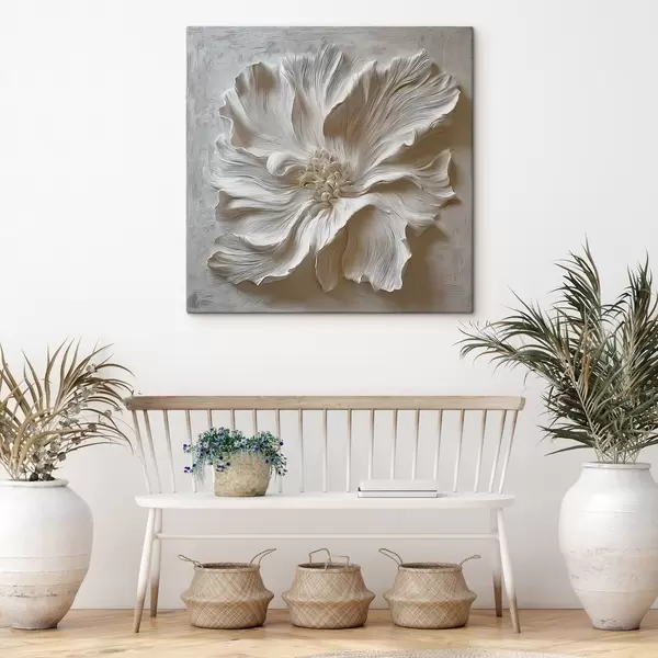 Peinture sculpture florale en relief en plâtre blanc Art. s48065