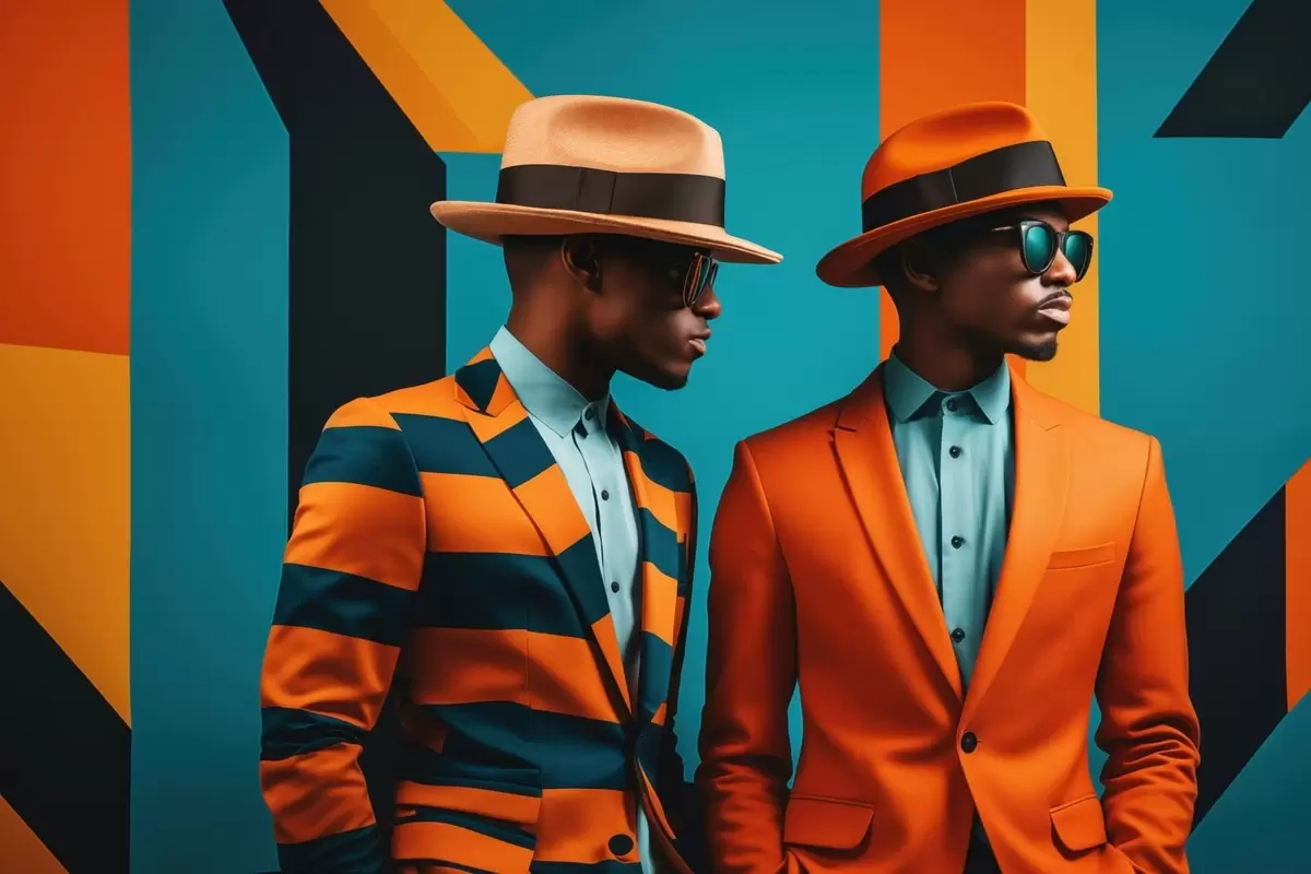 Peintures Deux hommes en costumes et chapeaux colorés s48091