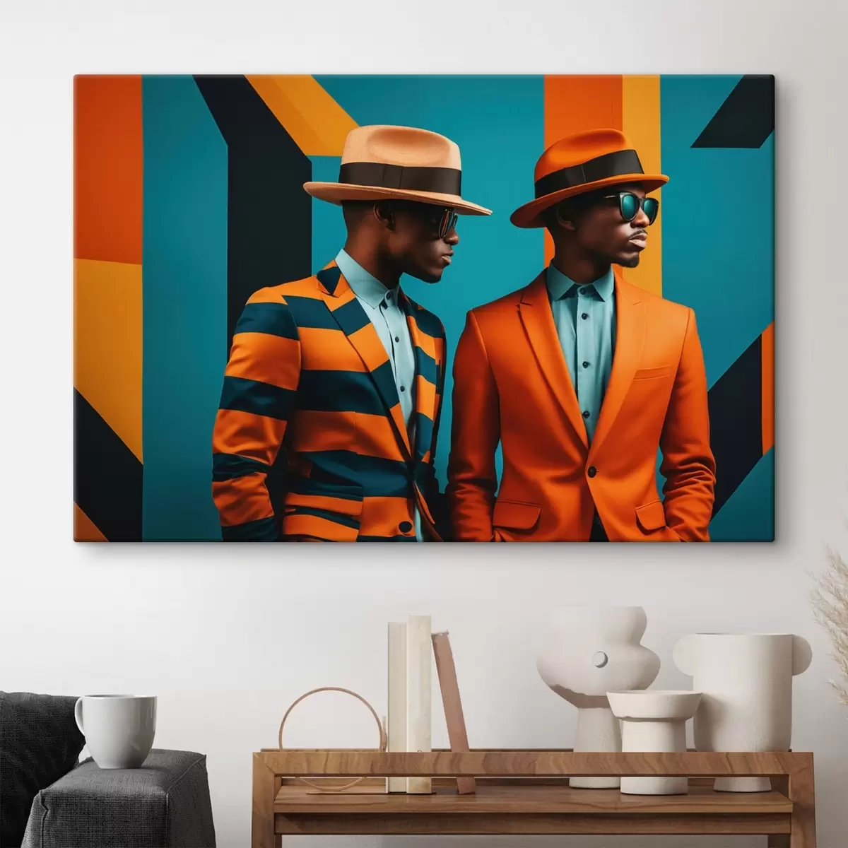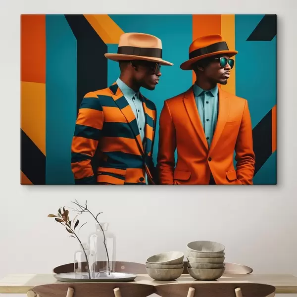 Peinture Deux hommes en costumes et chapeaux colorés Art. s48091