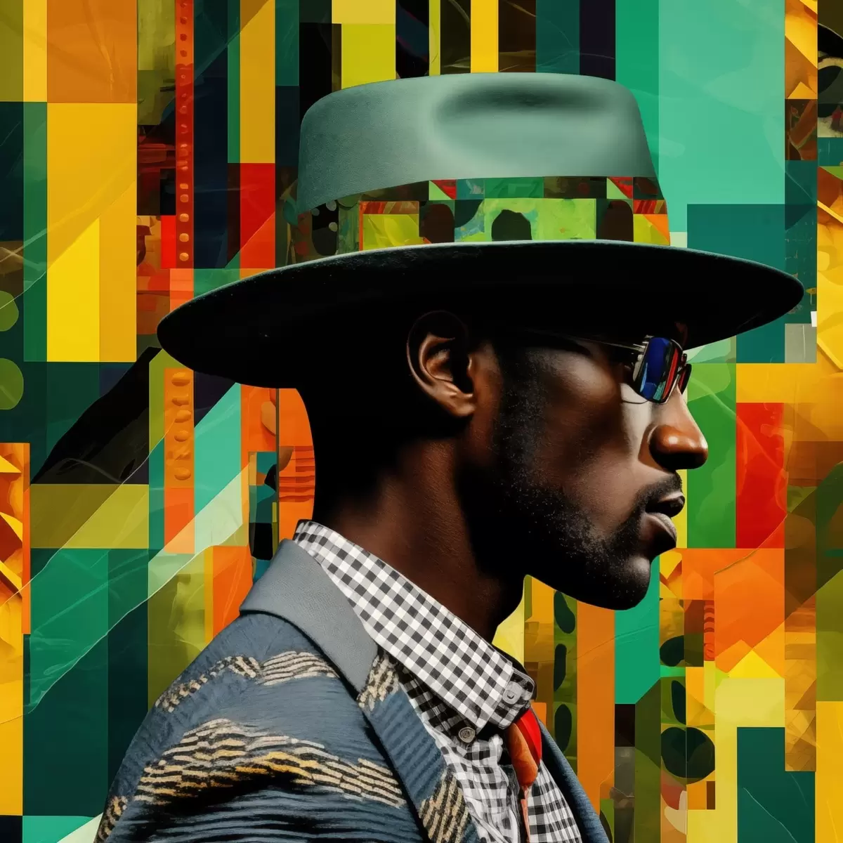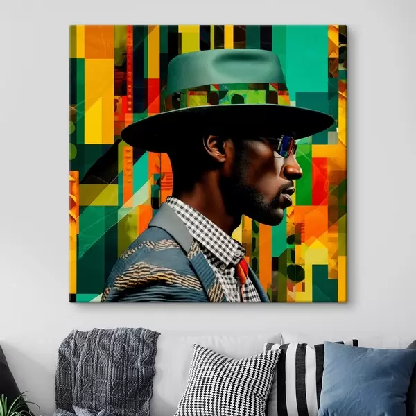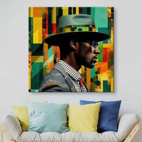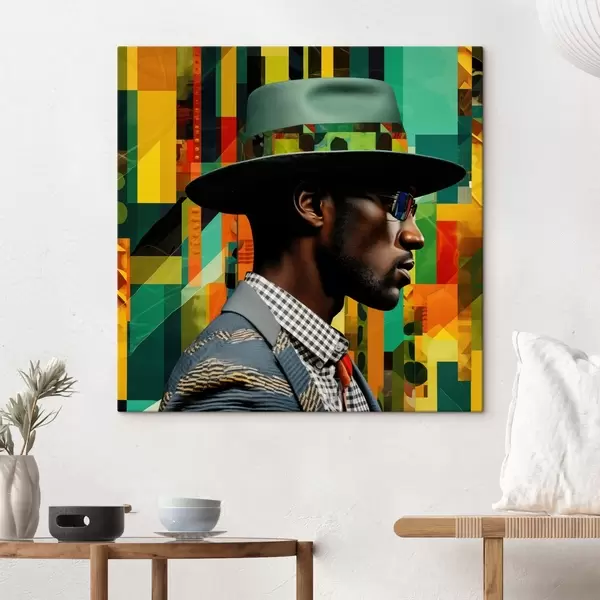 Peintures Portrait d'un homme coiffé d'un chapeau sur un fond coloré s48100