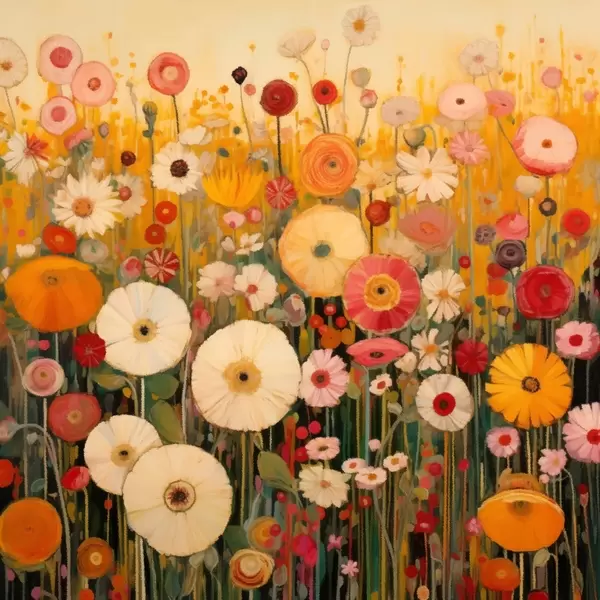 Peinture champ de fleurs ornementales aux couleurs vives Art. s48112