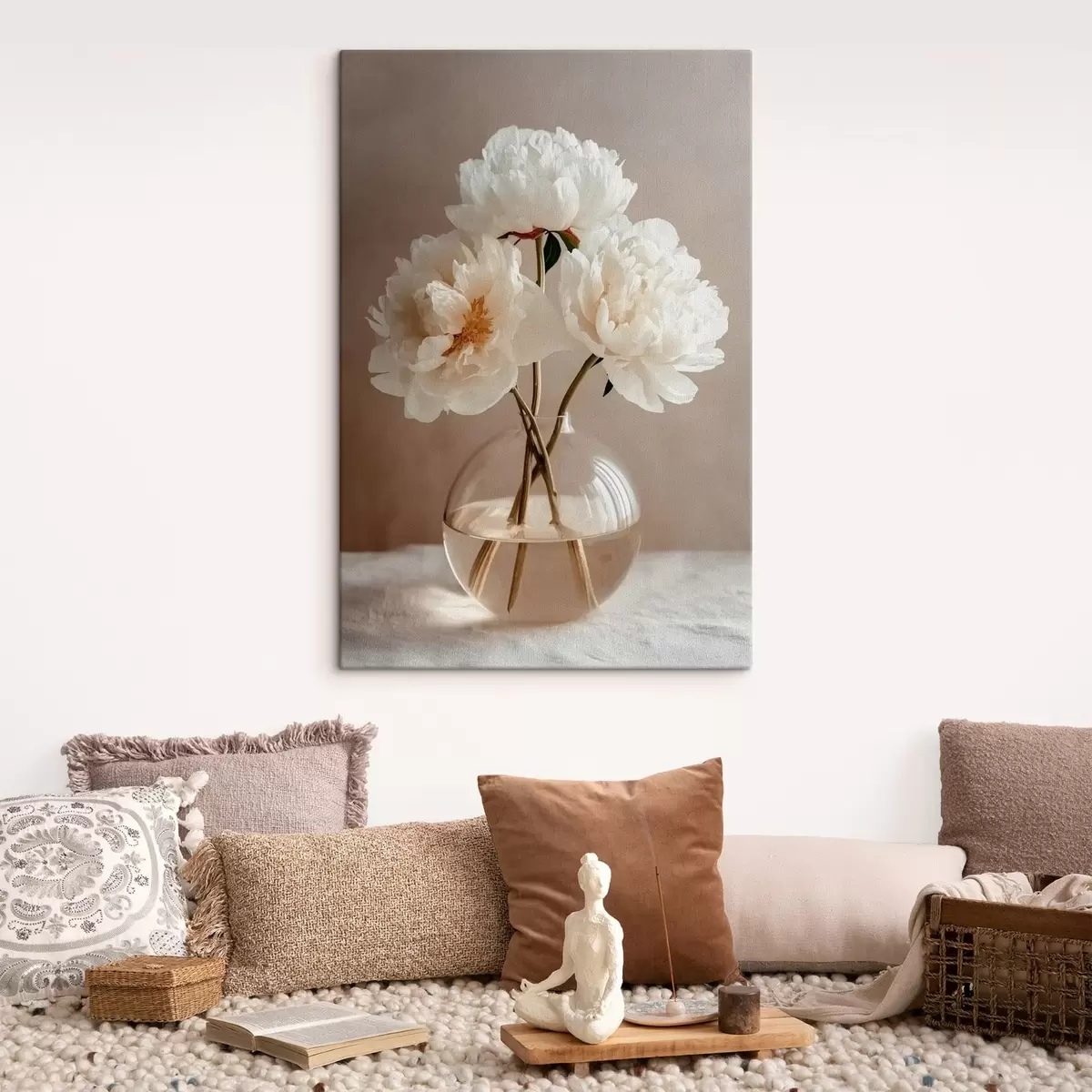 Peinture nature morte minimaliste et aérienne avec des pivoines Art. s48119