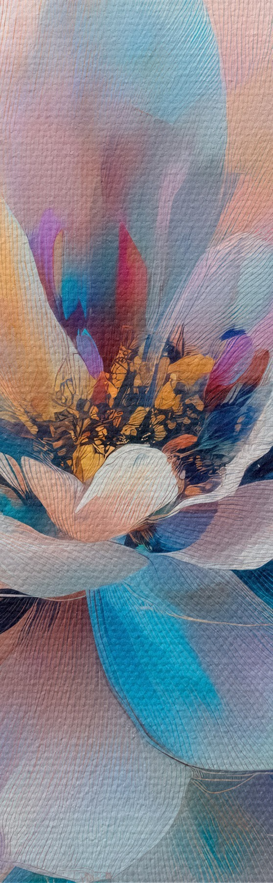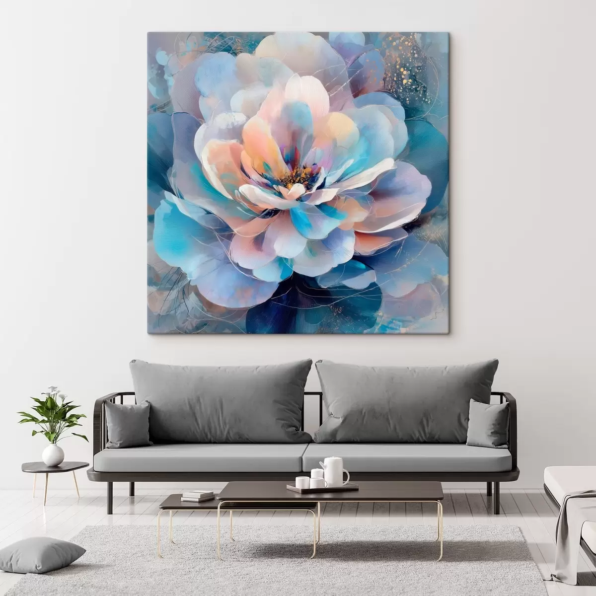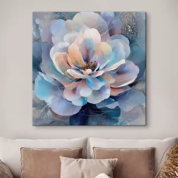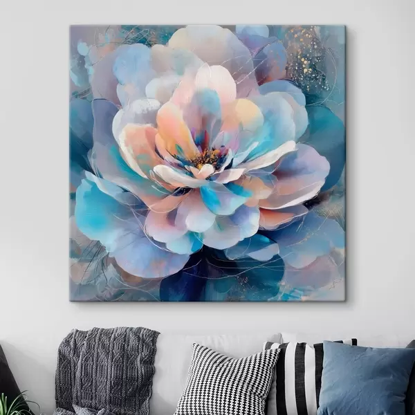 Peintures Fleur abstraite dans une palette de rose et de bleu, dans un style pictural contemporain s48185