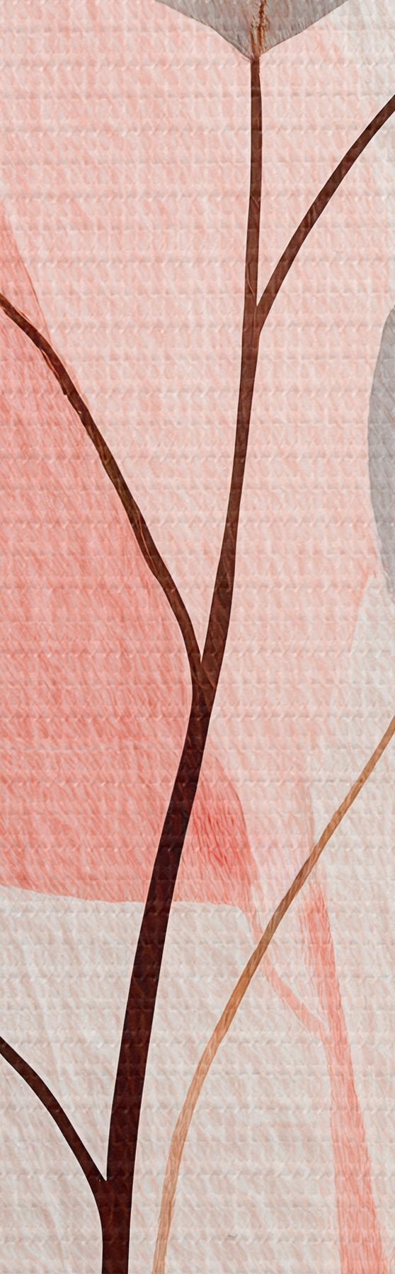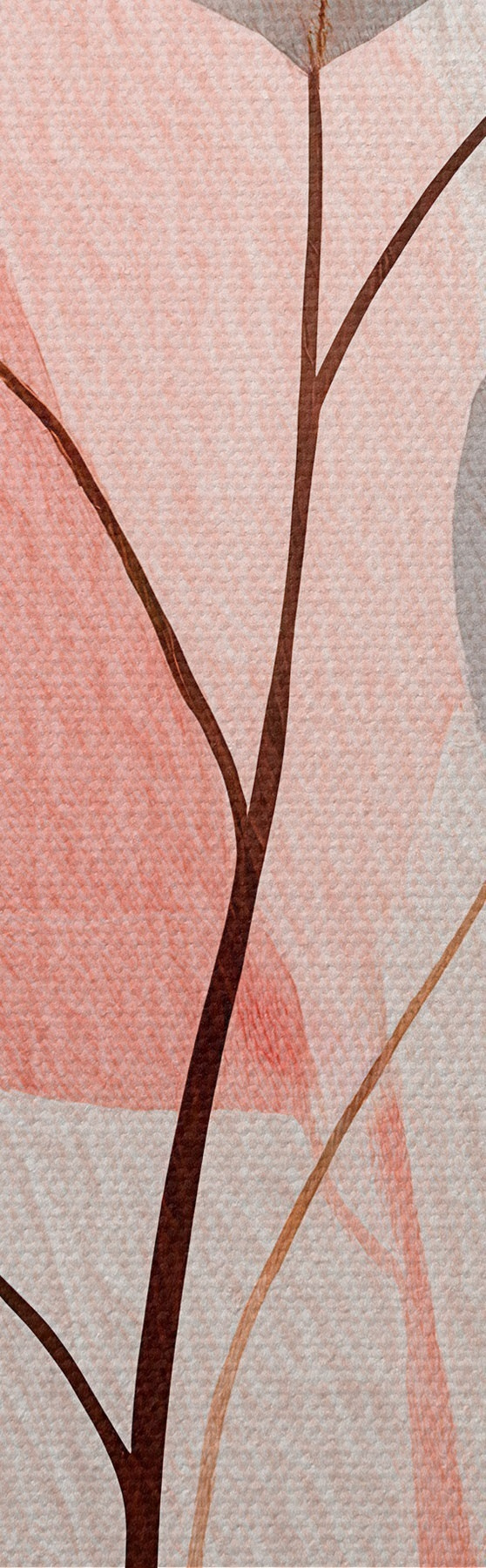 Peinture Branche abstraite aux feuilles arrondies, dans des tons chauds de beige et de corail Art. s48187