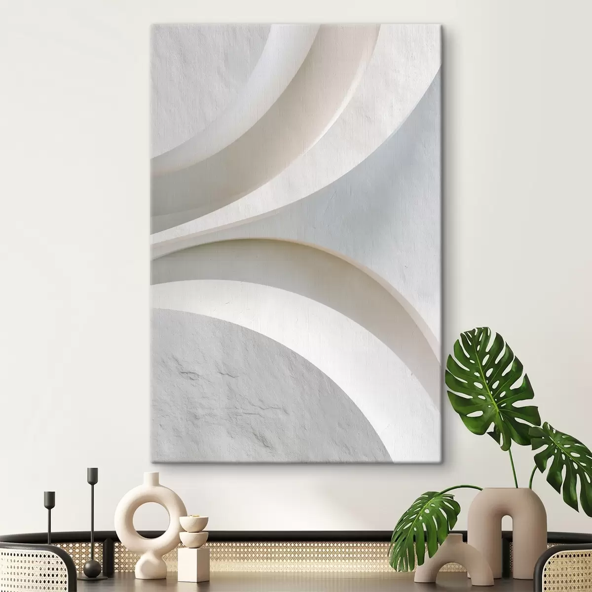Peintures Panneau décoratif présentant des formes architecturales en relief sur un fond clair s48191