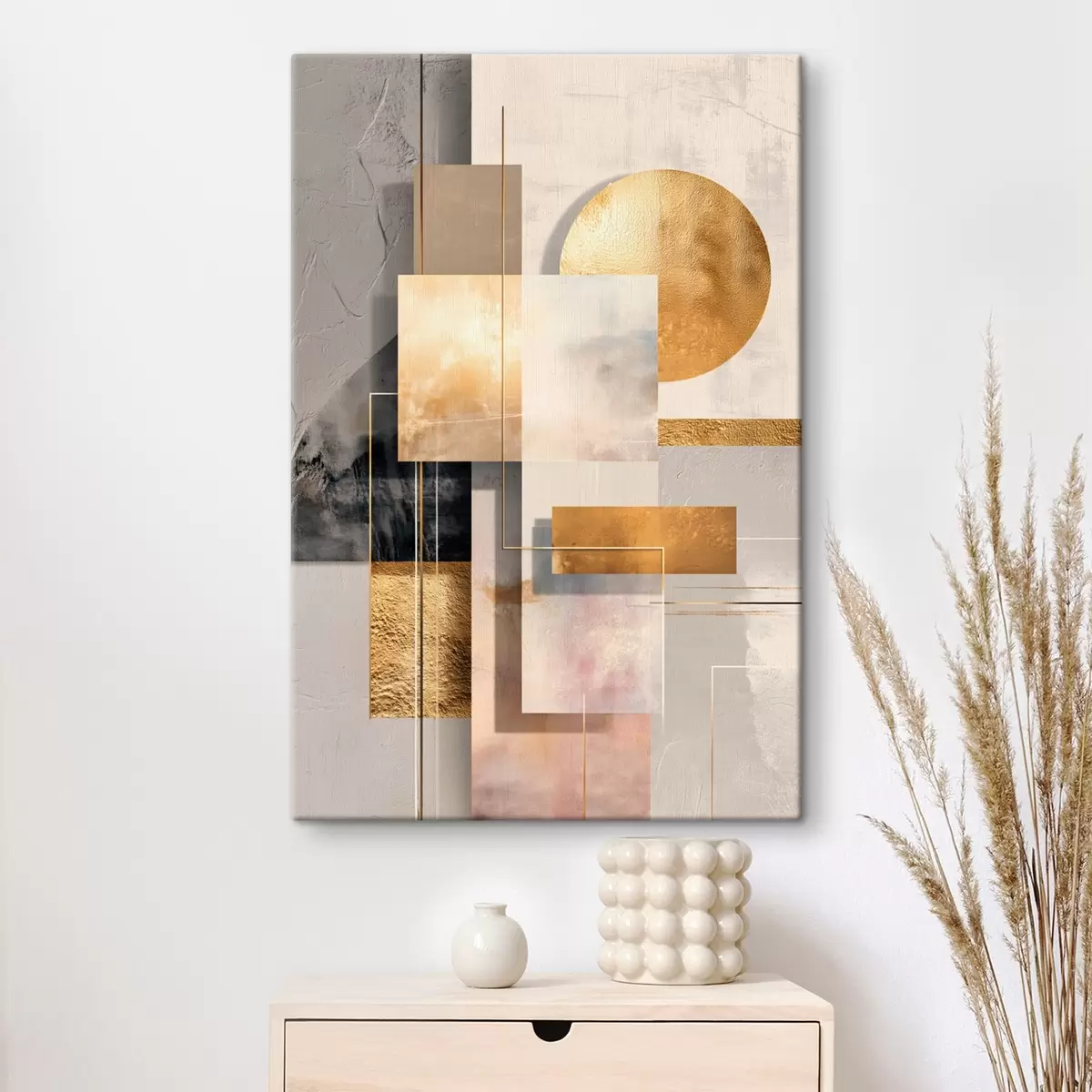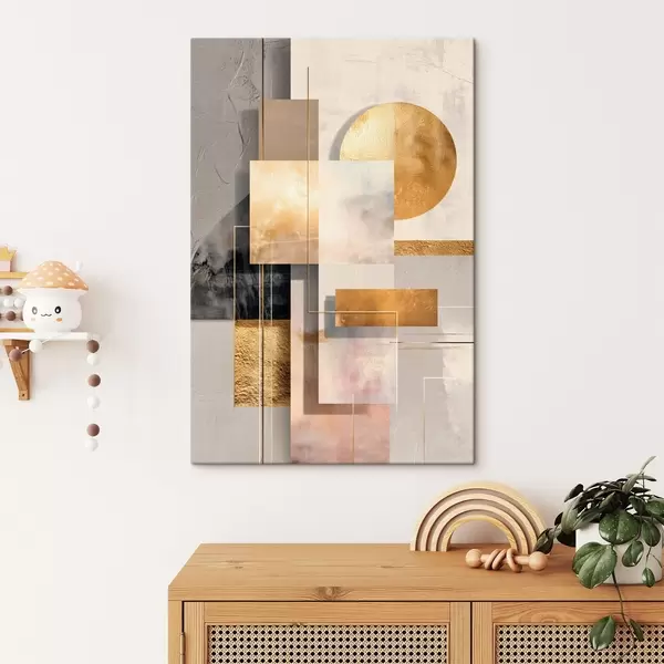 Peinture Composition décorative composée de rectangles et d'un cercle dans une palette de tons beiges et bruns chauds Art. s48196