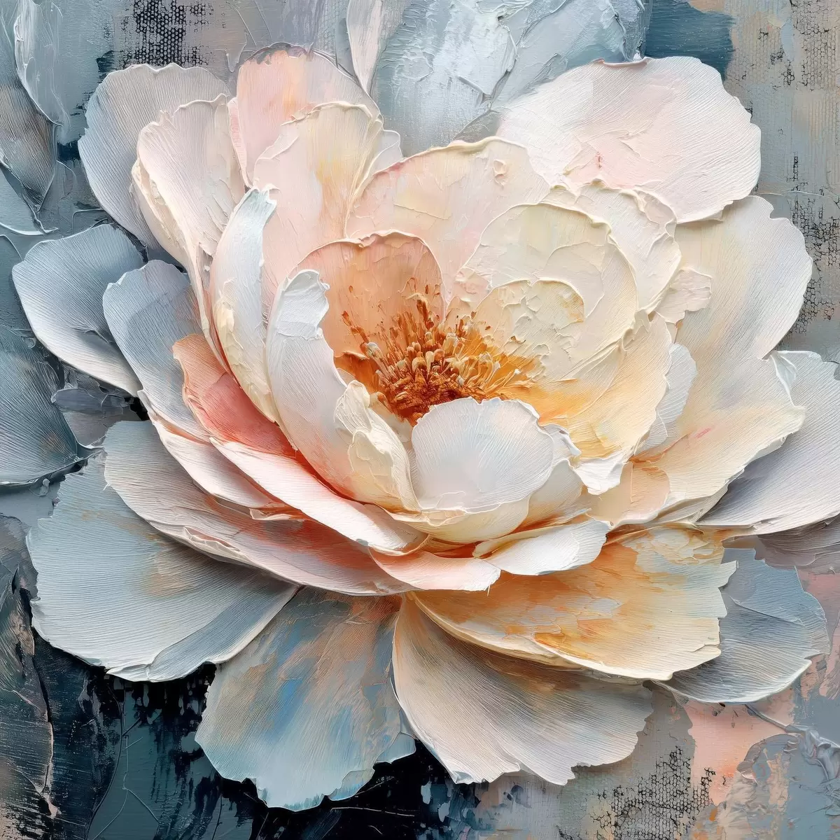 Peinture Gros plan sur une fleur, réalisé avec des coups de pinceau texturés et expressifs, dans un style pictural contemporain Art. s48198