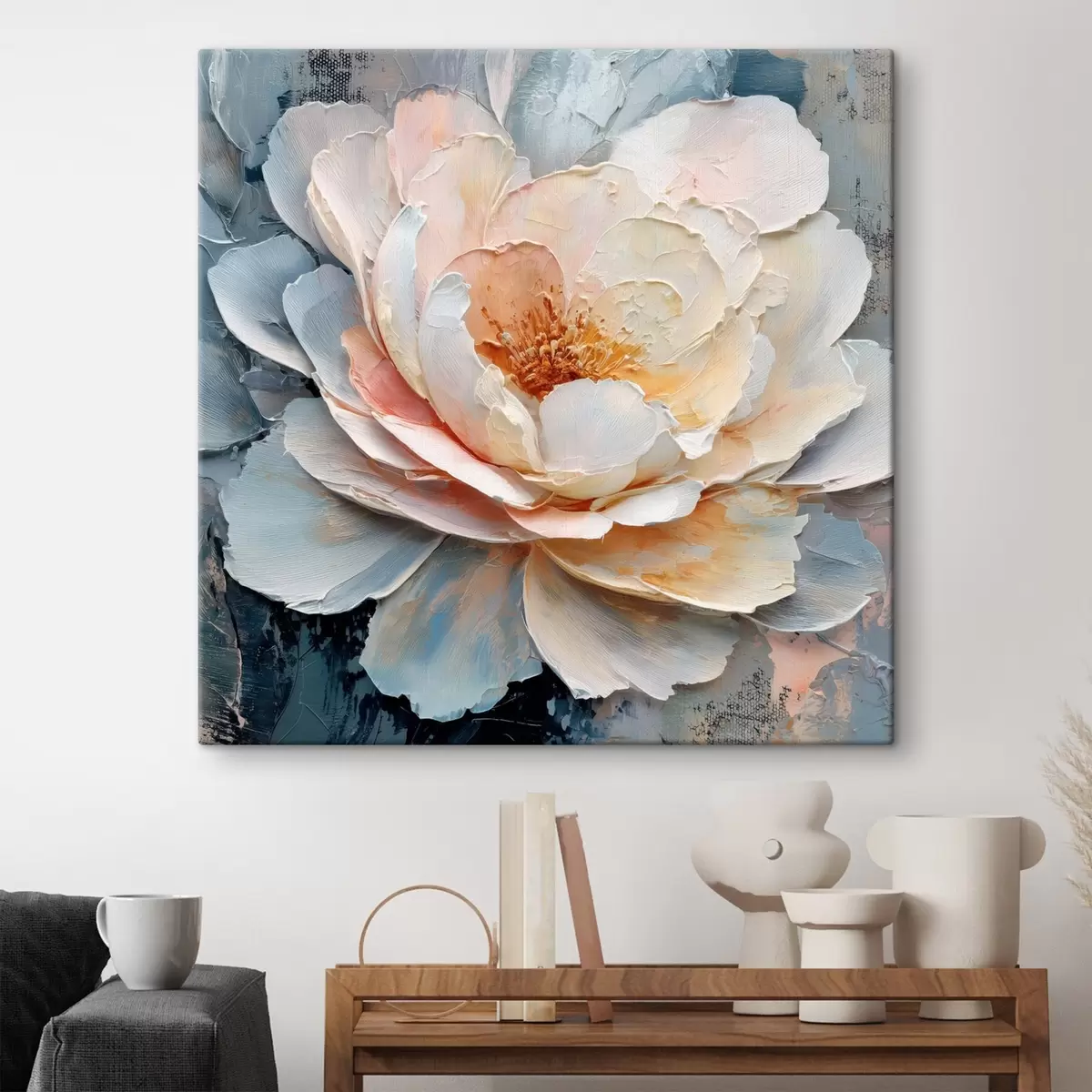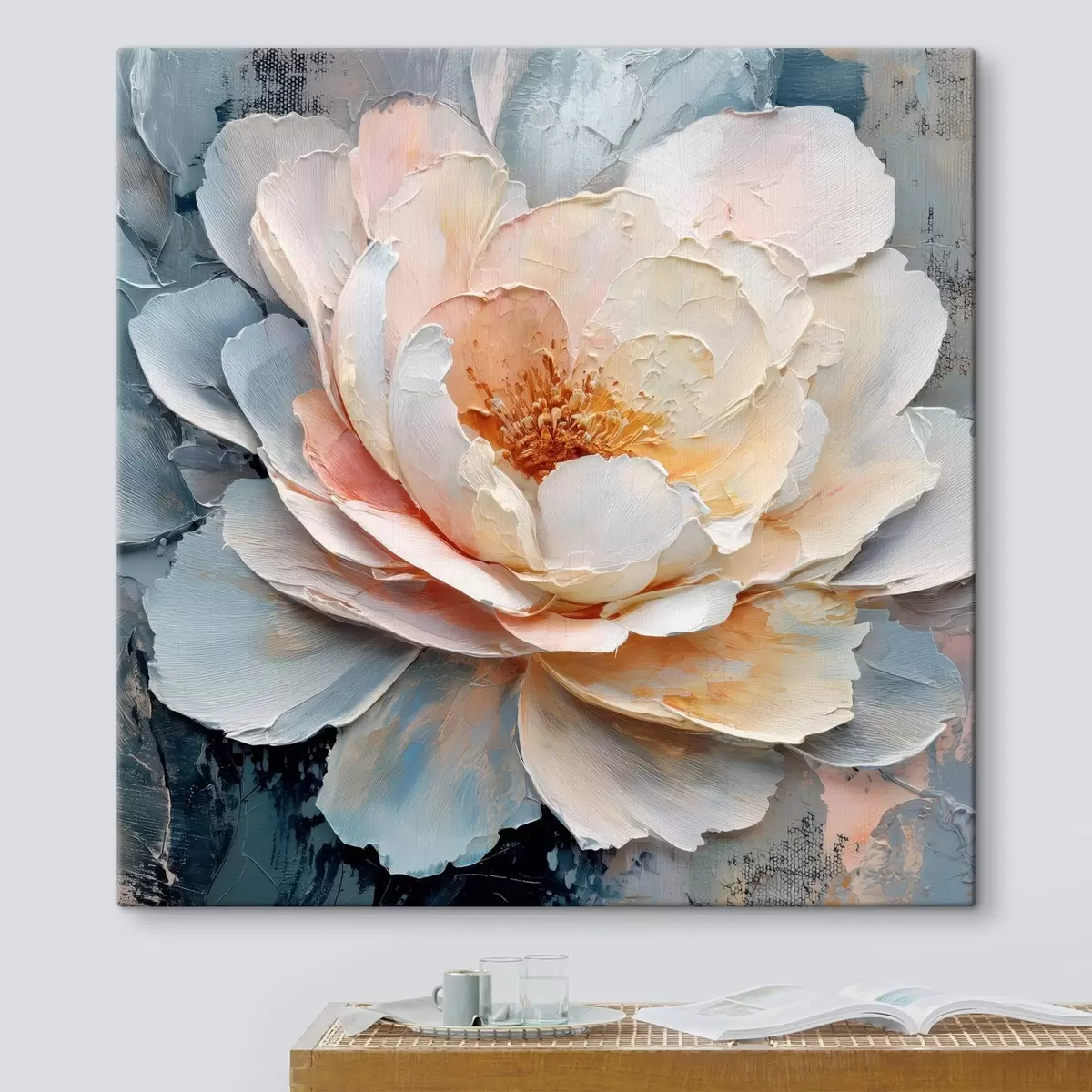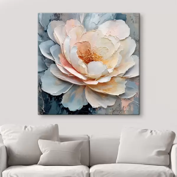 Peintures Gros plan sur une fleur, réalisé avec des coups de pinceau texturés et expressifs, dans un style pictural contemporain s48198