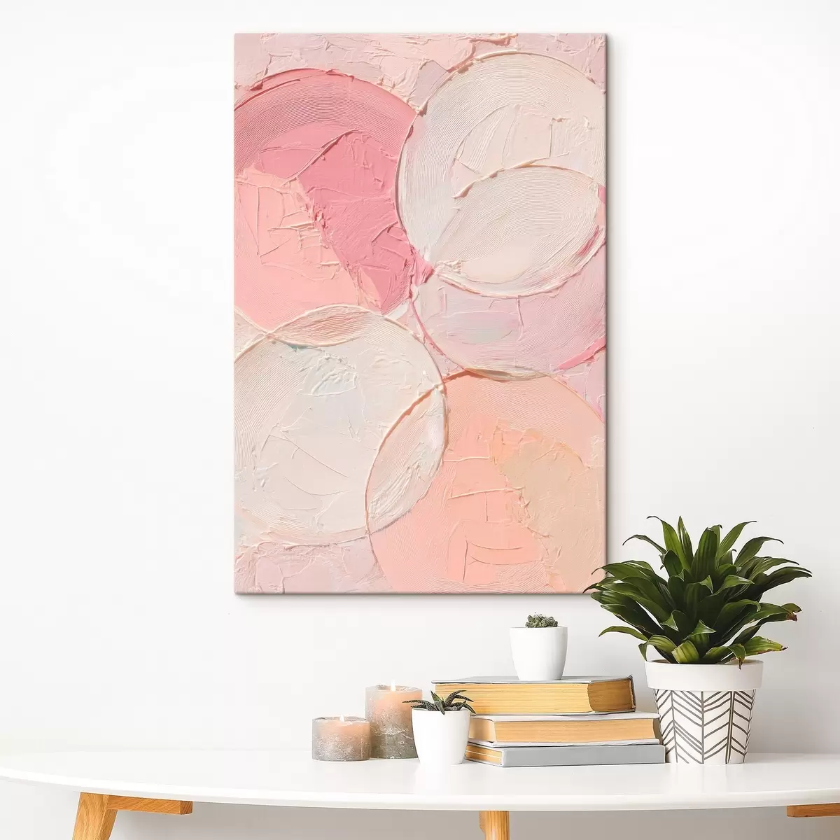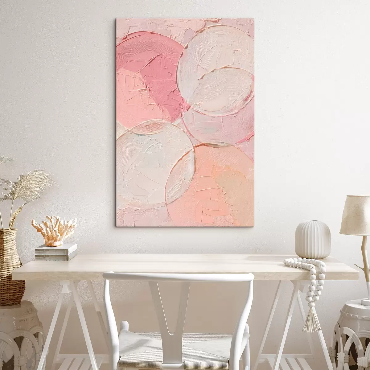 Peintures Composition abstraite avec des cercles dans des tons rose pâle, dans un style de peinture à l'huile s48207