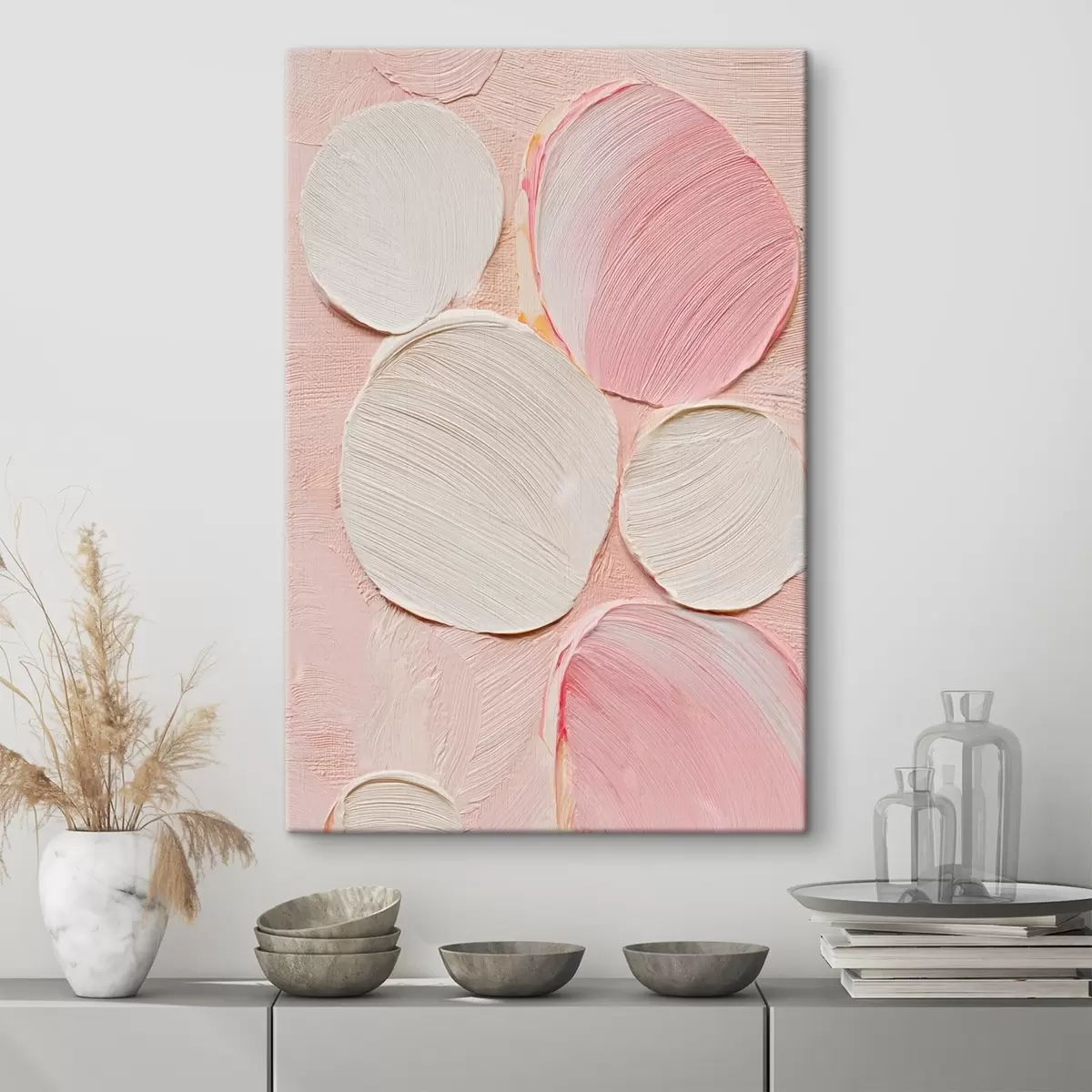 Peintures Panneau décoratif orné de coups de pinceau circulaires en relief dans une palette de couleurs pastel s48208