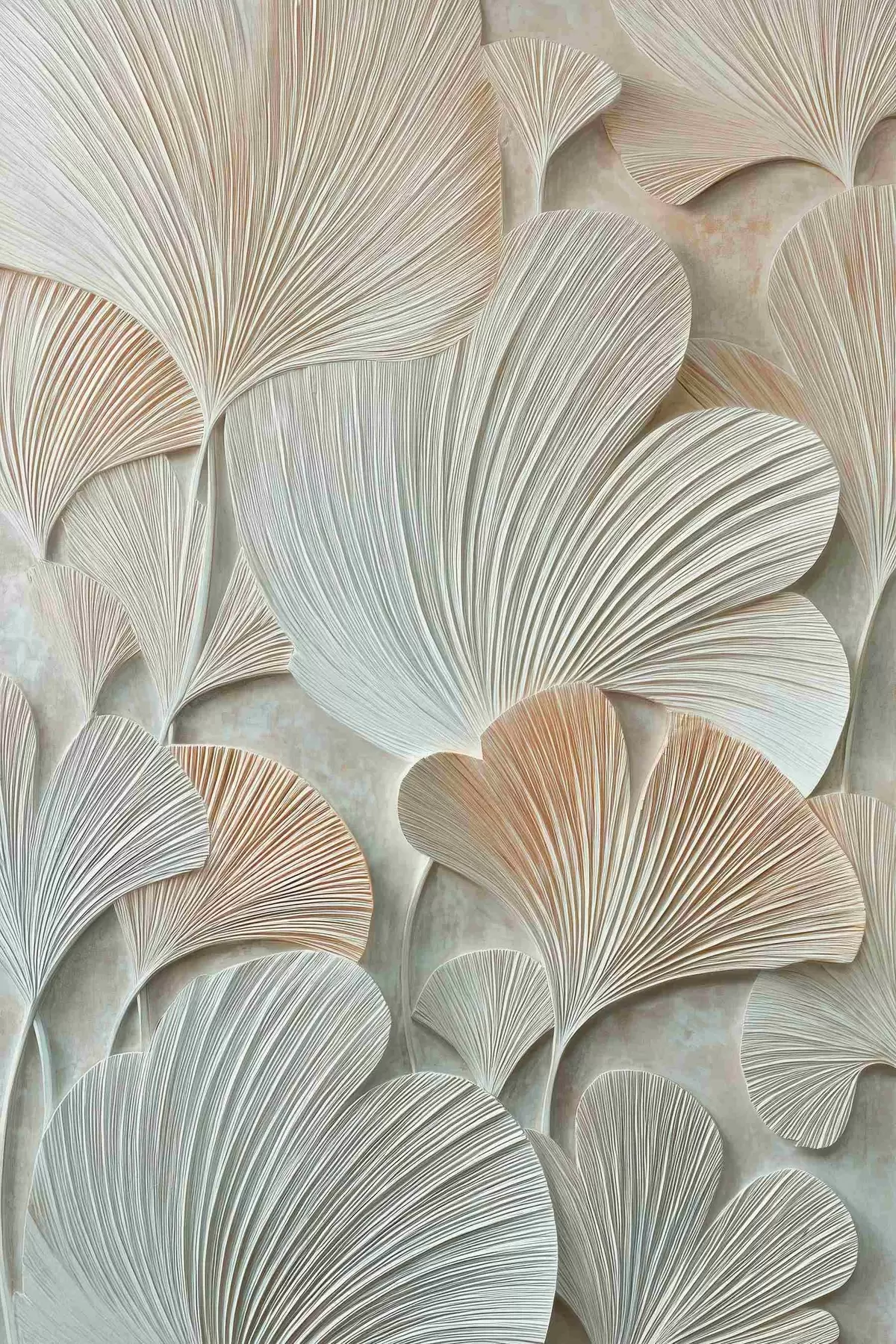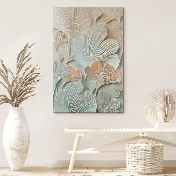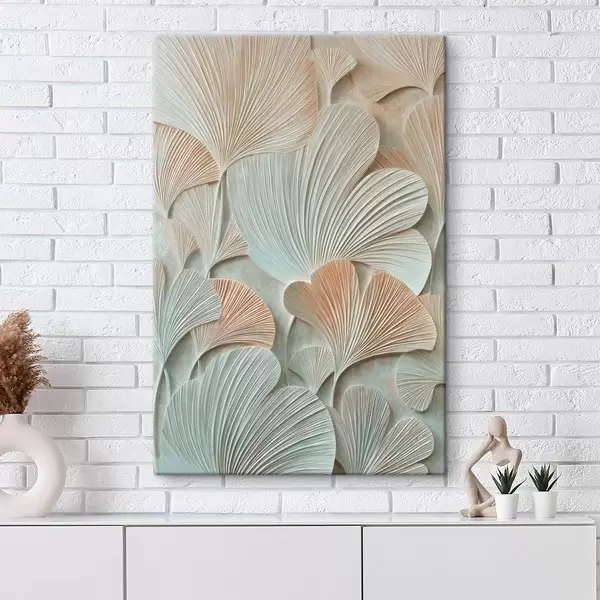 Peinture Feuilles de ginkgo biloba stylisées, avec une texture en relief dans des tons pastel Art. s48209