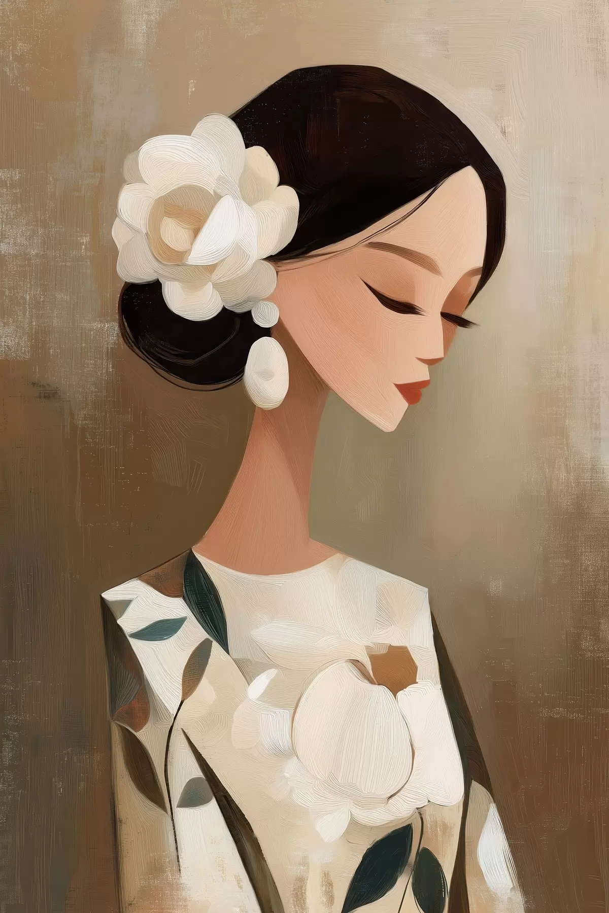 Peinture Fille avec des fleurs dans les cheveux Art. s48232