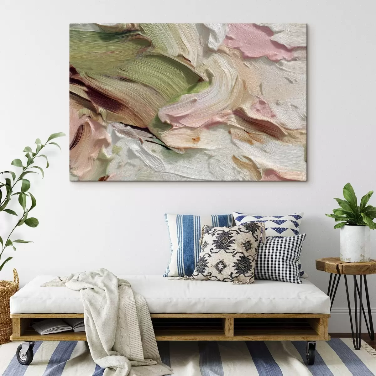 Trois types de matériaux peuvent être commandés : Economic Canvas - matériau dense et durable pour l'impression numérique, identique à la toile de peintre, surface imperméable, reproduction réaliste des détails, matériau à grain moyen. Premium Canvas - la texture ressemble à celle d'une toile de peintre (petits fils entrelacés). Reproduction douce et détaillée de l'image sur une surface mate. Eco-Premium - tissu 100 % coton de haute qualité. Grâce aux fibres naturelles de coton, le matériau est durable et résistant à l'usure. Excellente reproduction des couleurs et des détails.