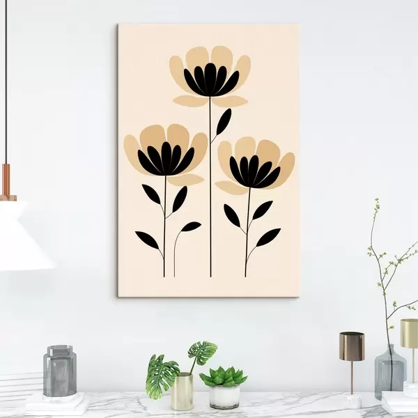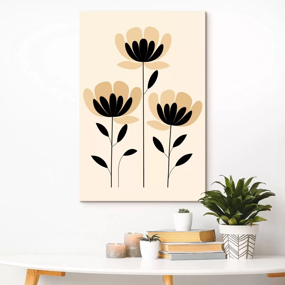 Peinture Fleurs minimalistes dans un style noir et beige Art. s48353
