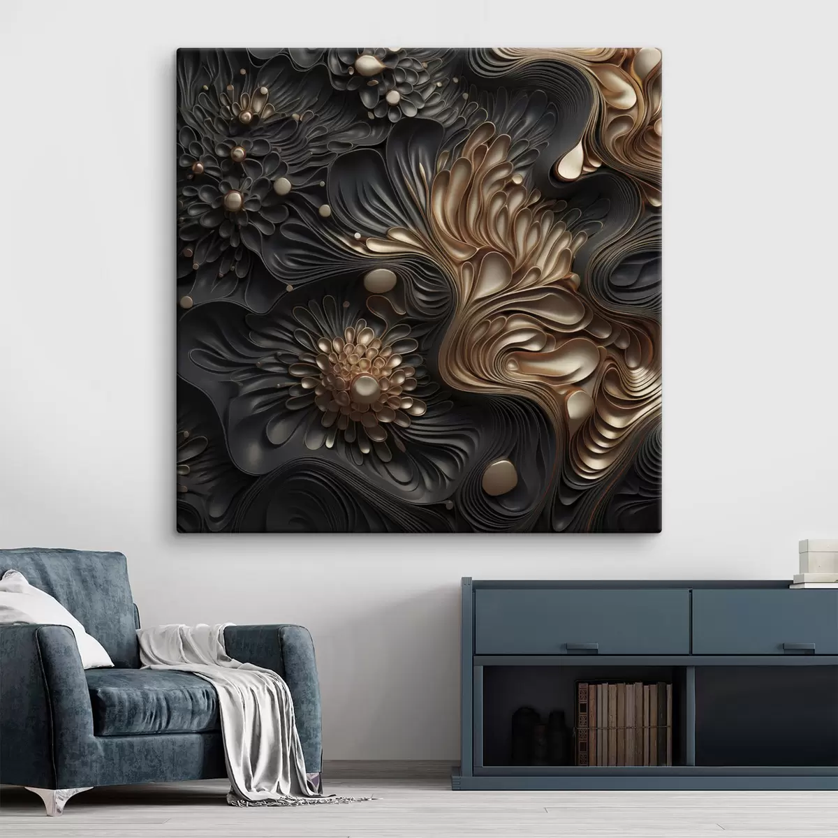 Peinture Des formes sombres, abstraites, fluides et organiques, qui composent une œuvre d'art moderne riche en textures Art. s48384