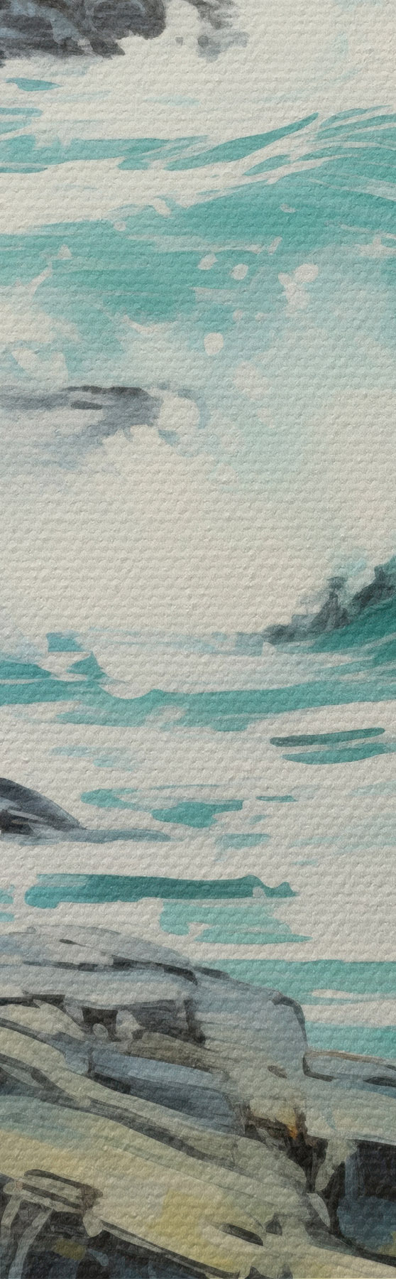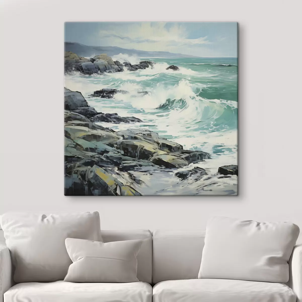 Peintures Un paysage de côte rocheuse avec des vagues sous un ciel nuageux, style peinture s48388