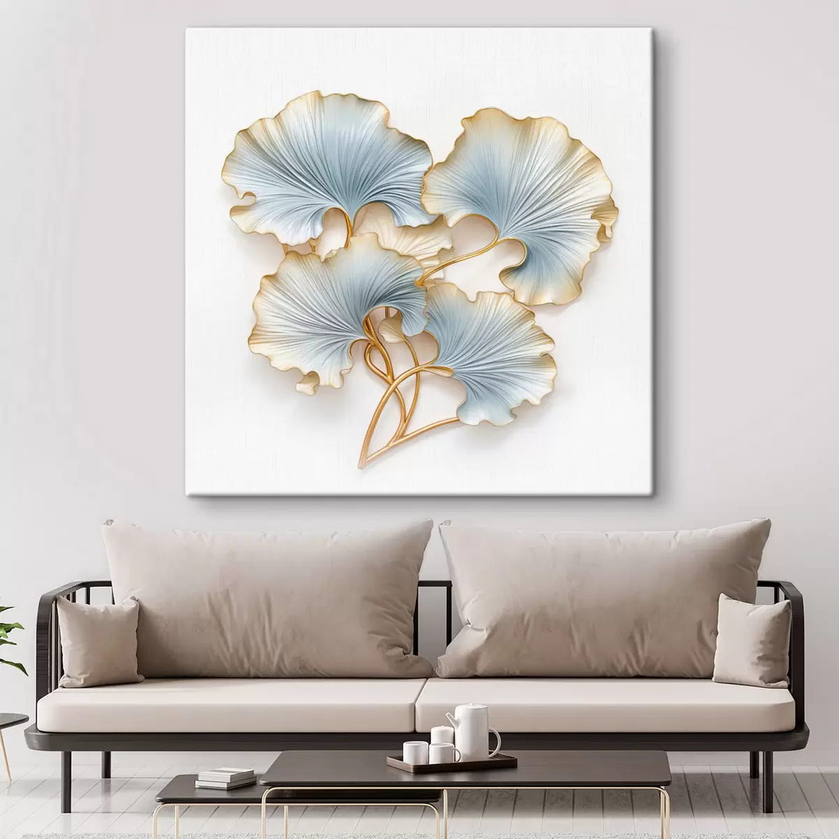 Peinture Feuilles de ginkgo stylisées rehaussées de touches de bleu et de jaune Art. s48397
