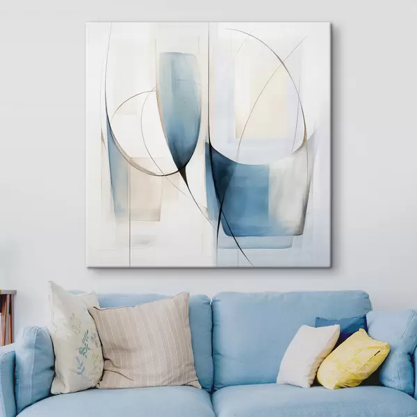 Peinture Composition abstraite et minimaliste composée de formes bleues et beiges Art. s48403