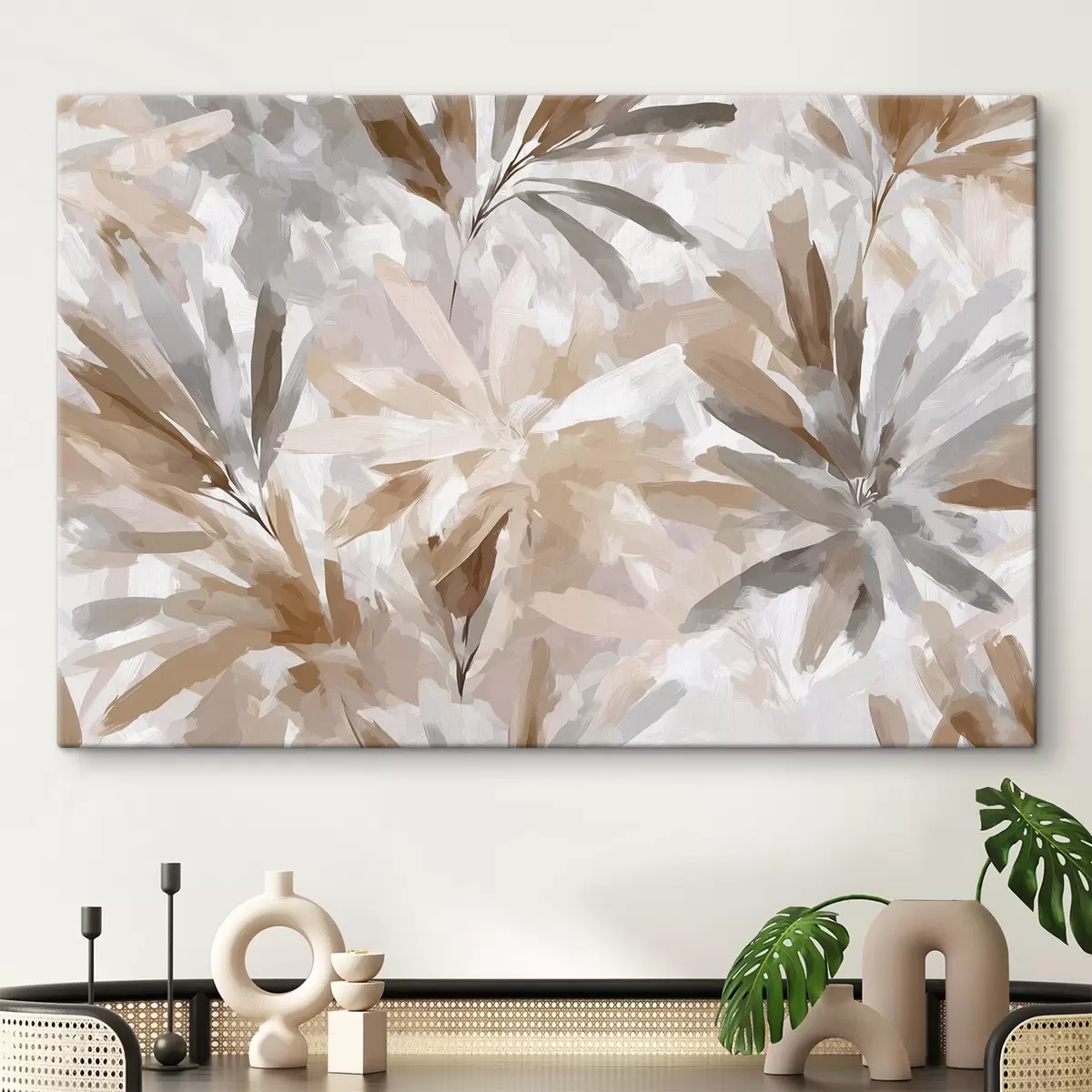 Peinture Fleurs abstraites beiges, œuvre d'art texturée Art. s48483