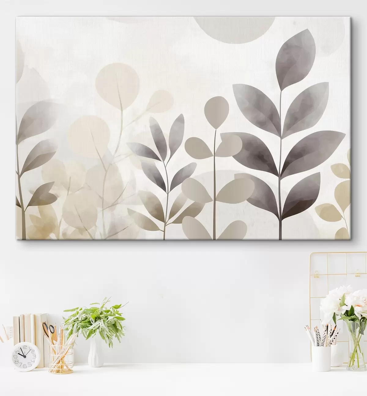 Peintures Silhouettes de feuilles beiges et grises, minimalisme s48487