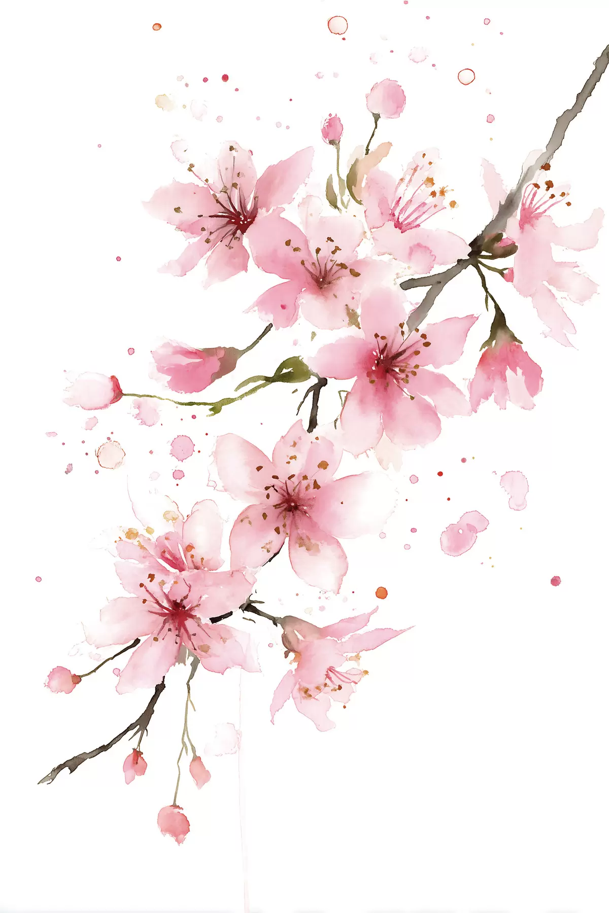 Peintures une branche d'abricotier en fleurs, dans un style aquarelle s48522