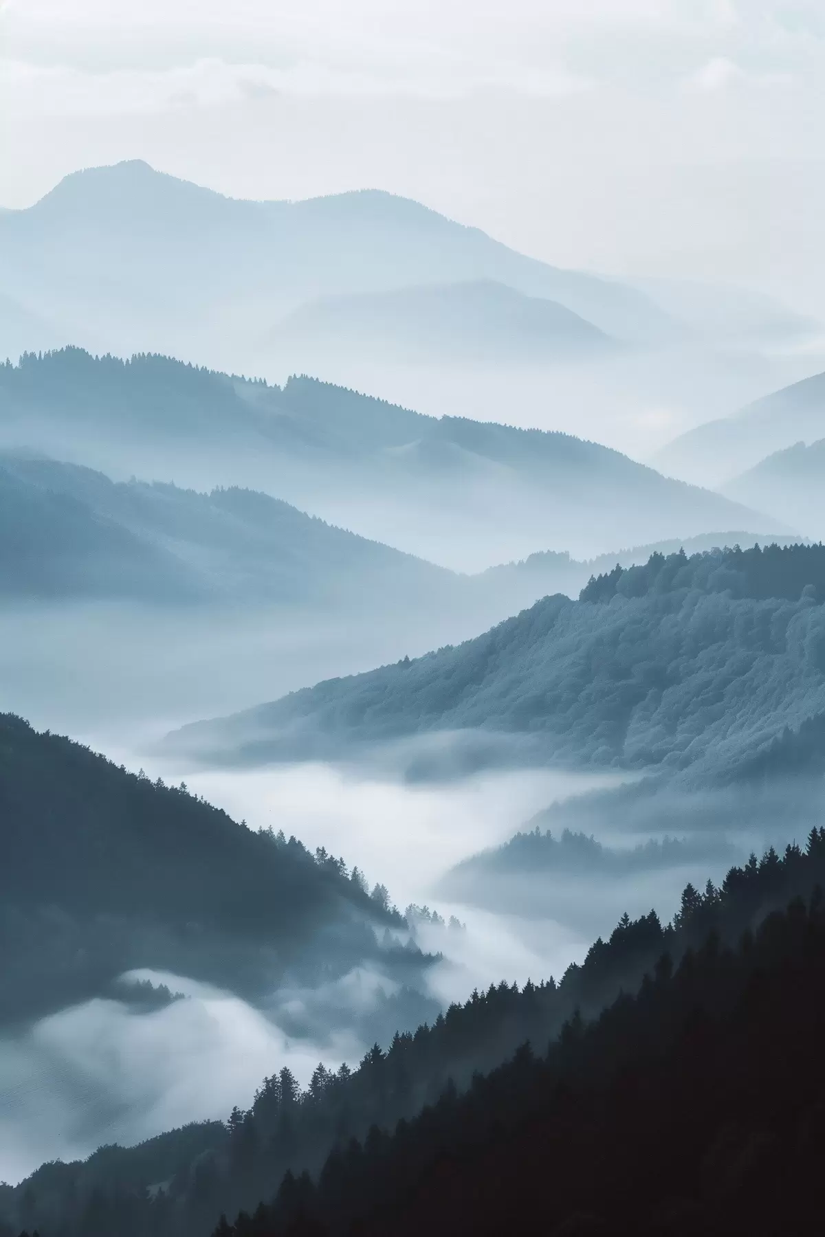 Peintures Montagnes brumeuses, paysage bleu s48567