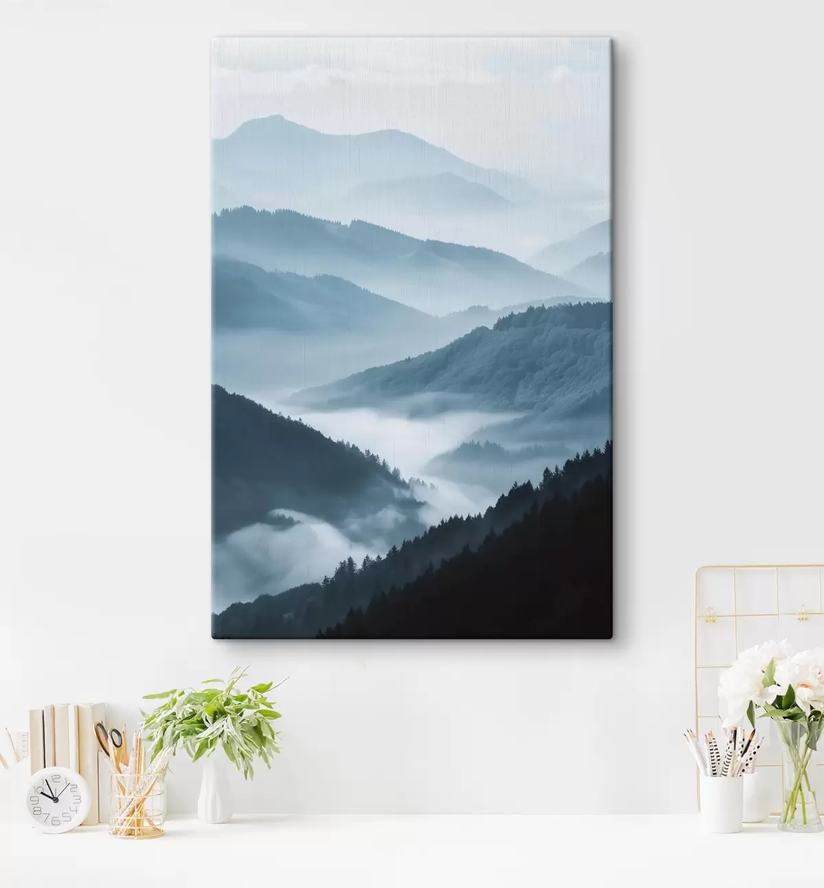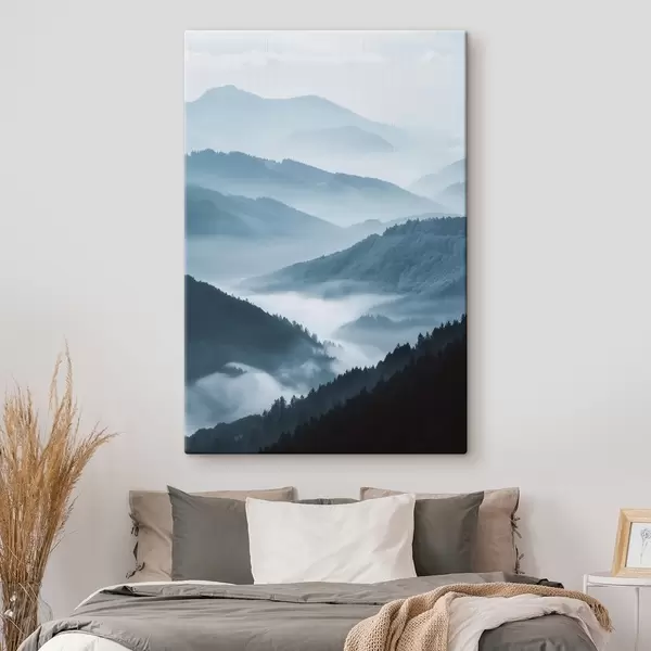 Peinture Montagnes brumeuses, paysage bleu Art. s48567