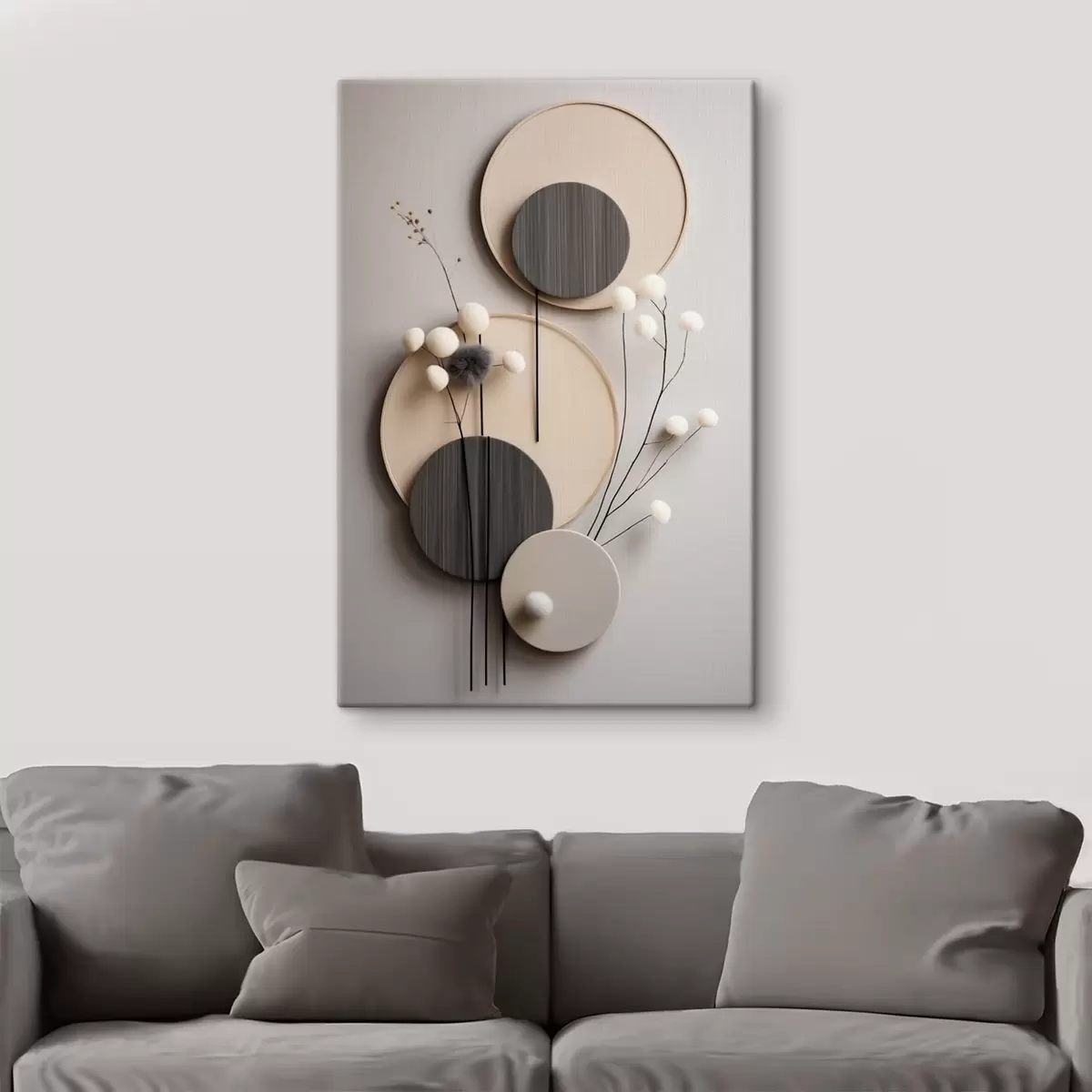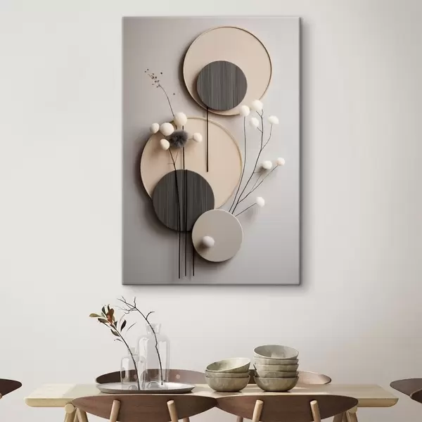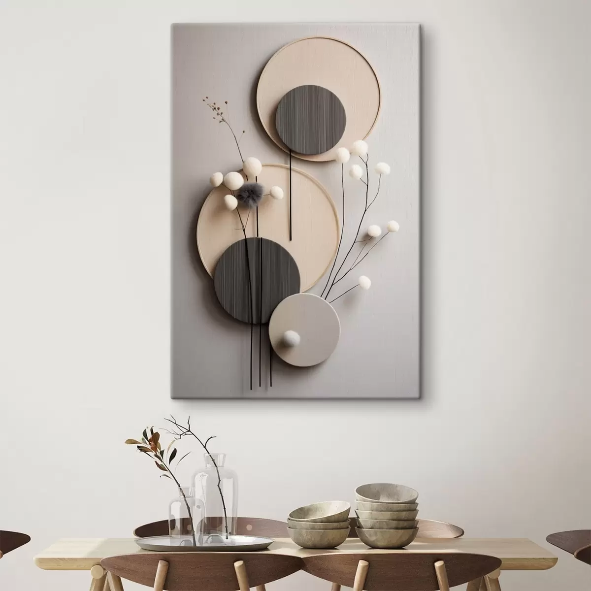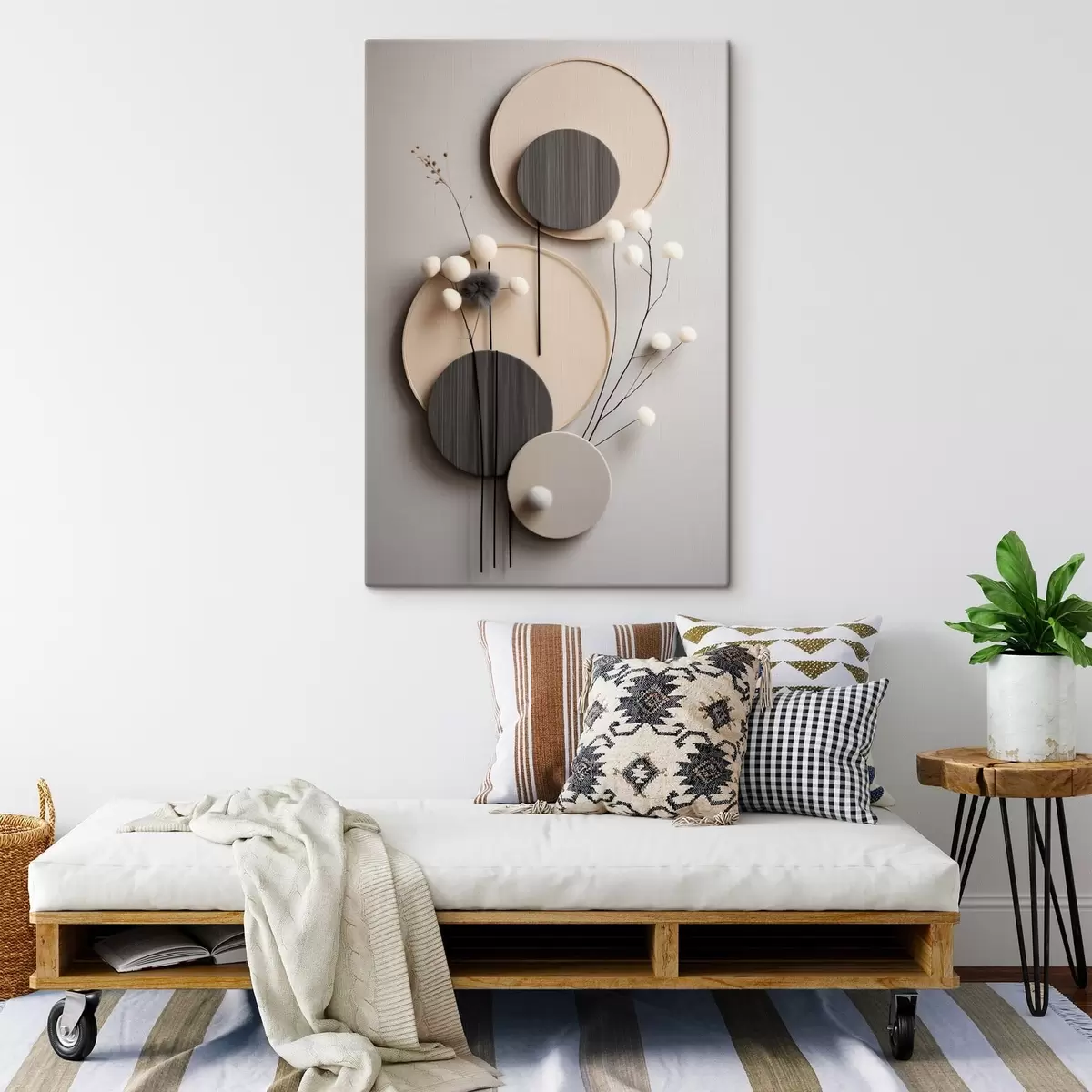 Peinture Panneaux ronds ornés de brindilles sèches et de boules moelleuses Art. s48601