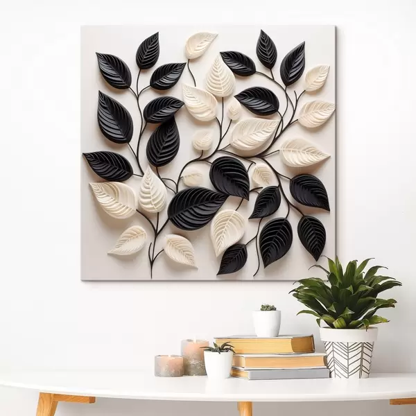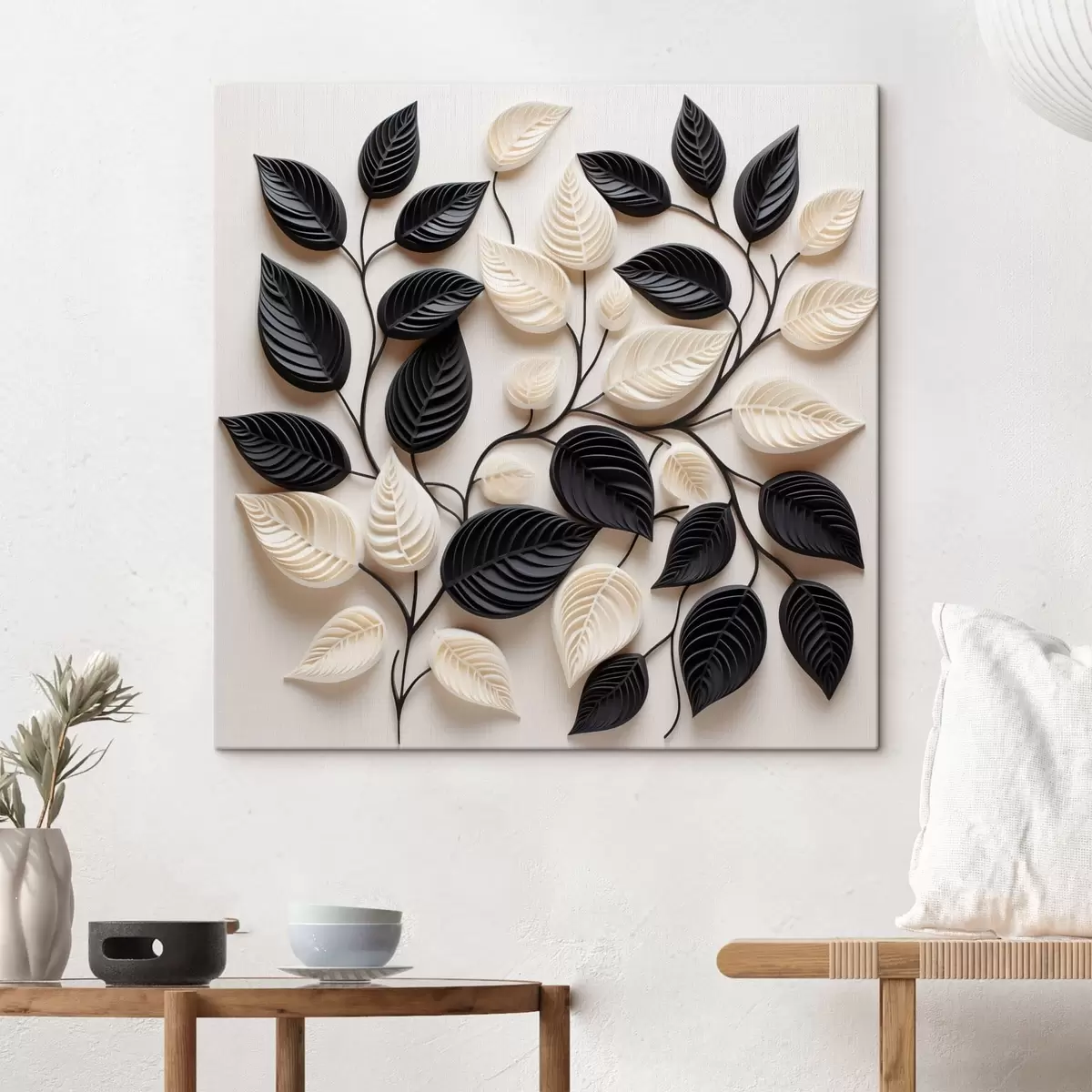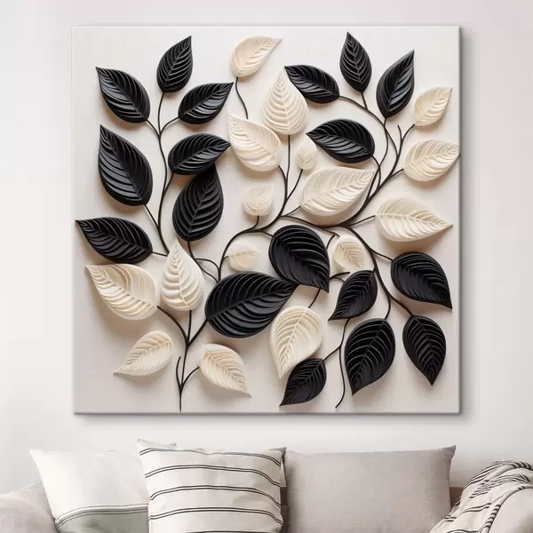 Peintures Composition de feuilles noires et claires sur les branches s48606