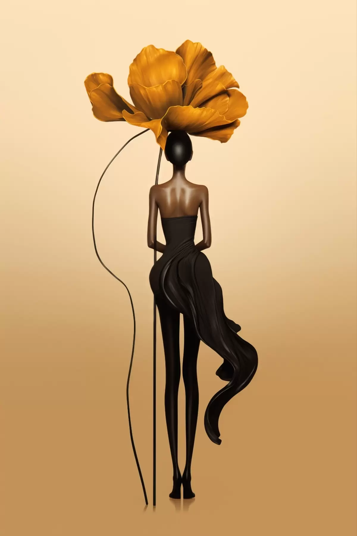 Peintures Figurine stylisée dont la tête est une grande fleur s48618