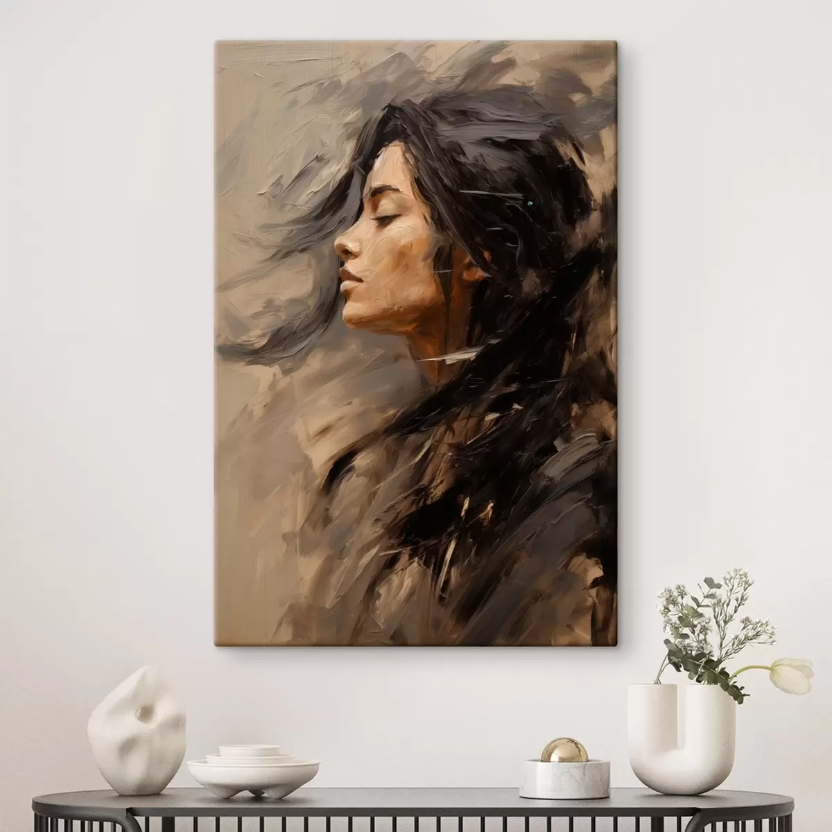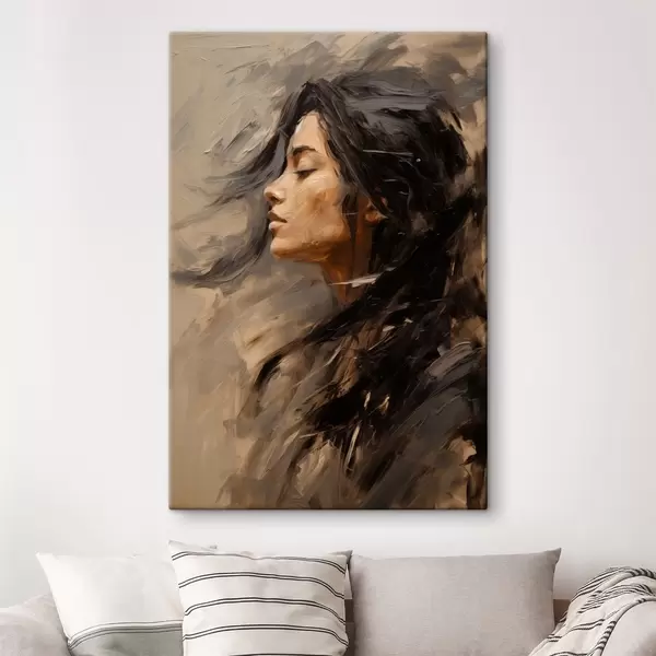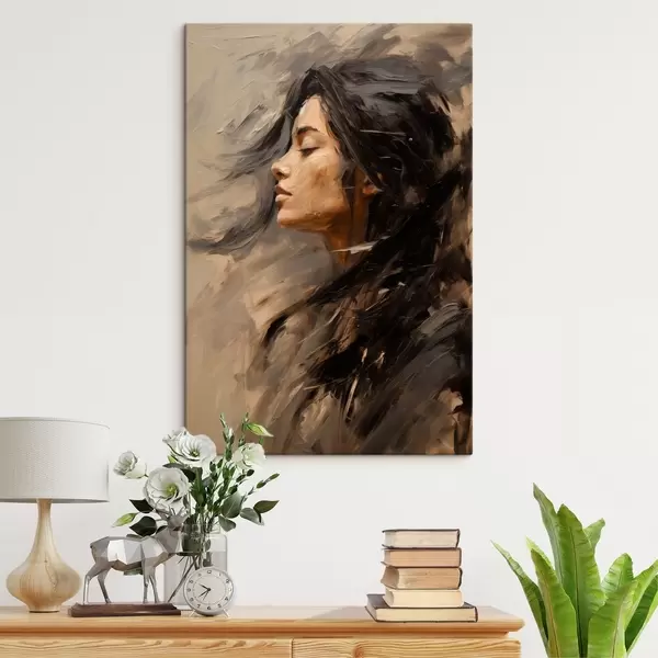 Peinture Profil féminin rendu par des touches picturales, dans des tons chauds Art. s48621