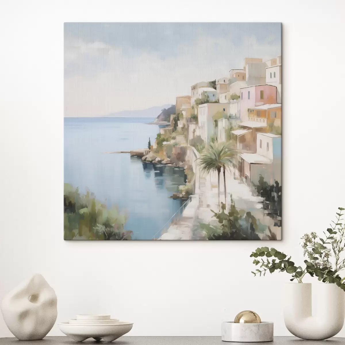 Peinture Paysage d'une ville au bord de la mer, imitation de peinture Art. s48674