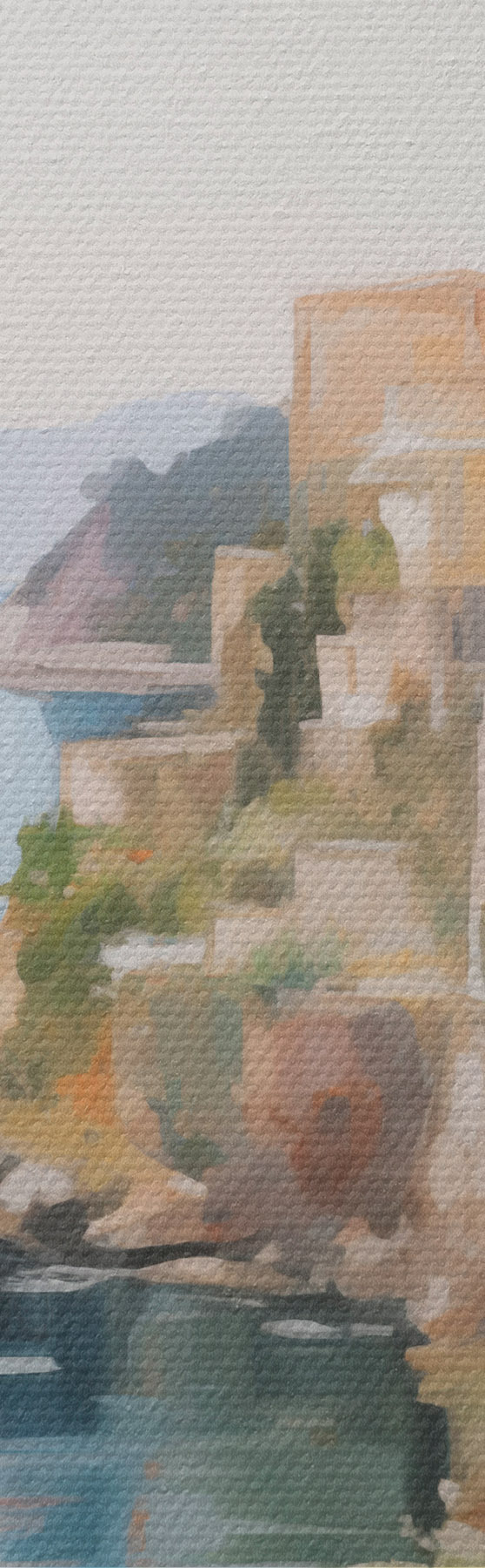 Peintures Paysage d'une ville au bord de la mer, imitation de peinture s48674