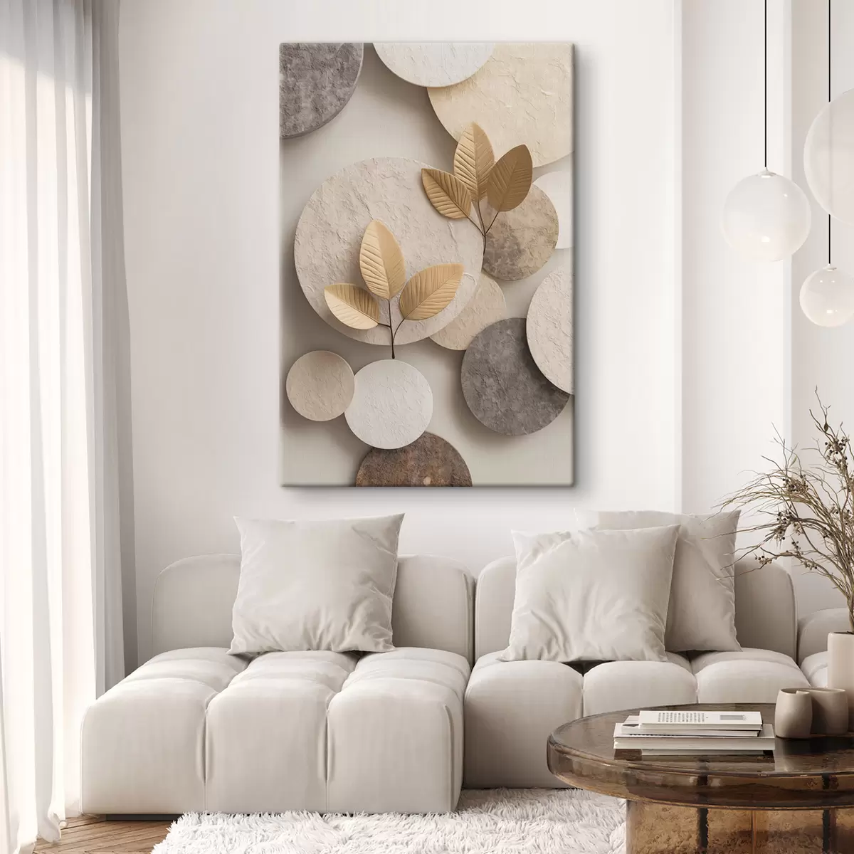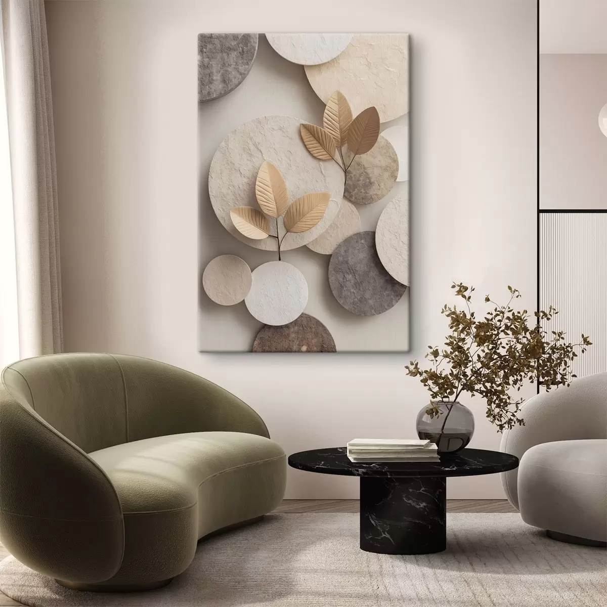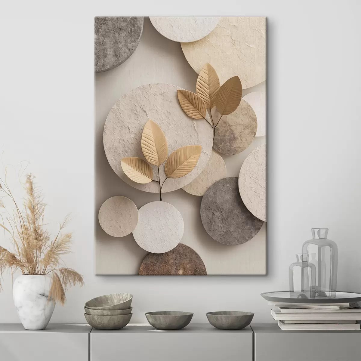 Peintures Une composition avec des feuilles et des cercles s48692