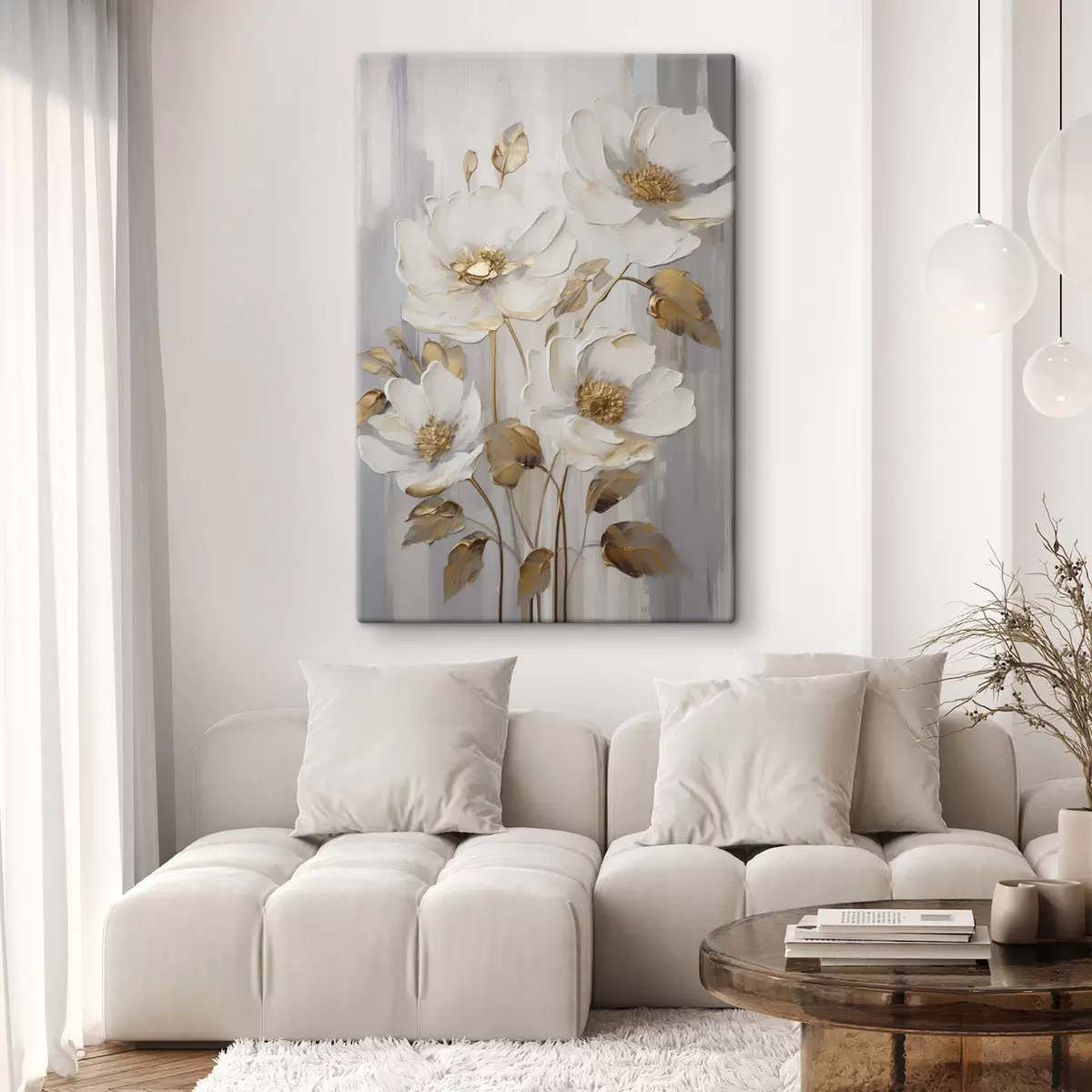 Peintures Des fleurs blanches rehaussées de touches jaunes sur un fond texturé s48722