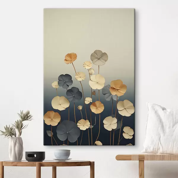 Peinture Des feuilles de nénuphar sur un fond sobre de beige et de bleu foncé Art. s48733