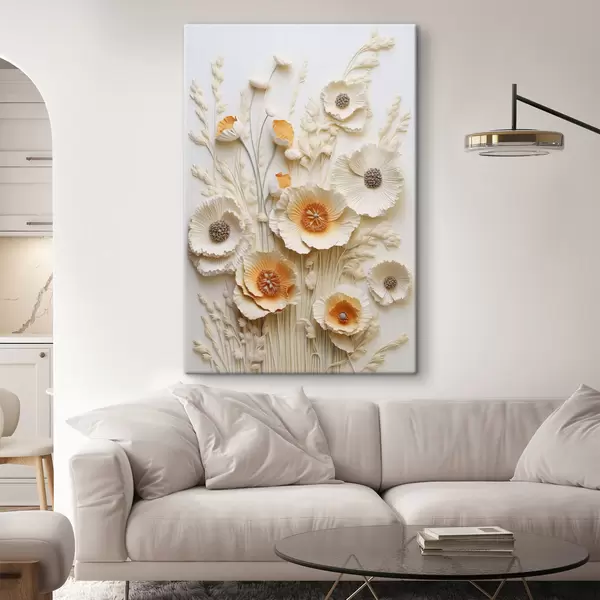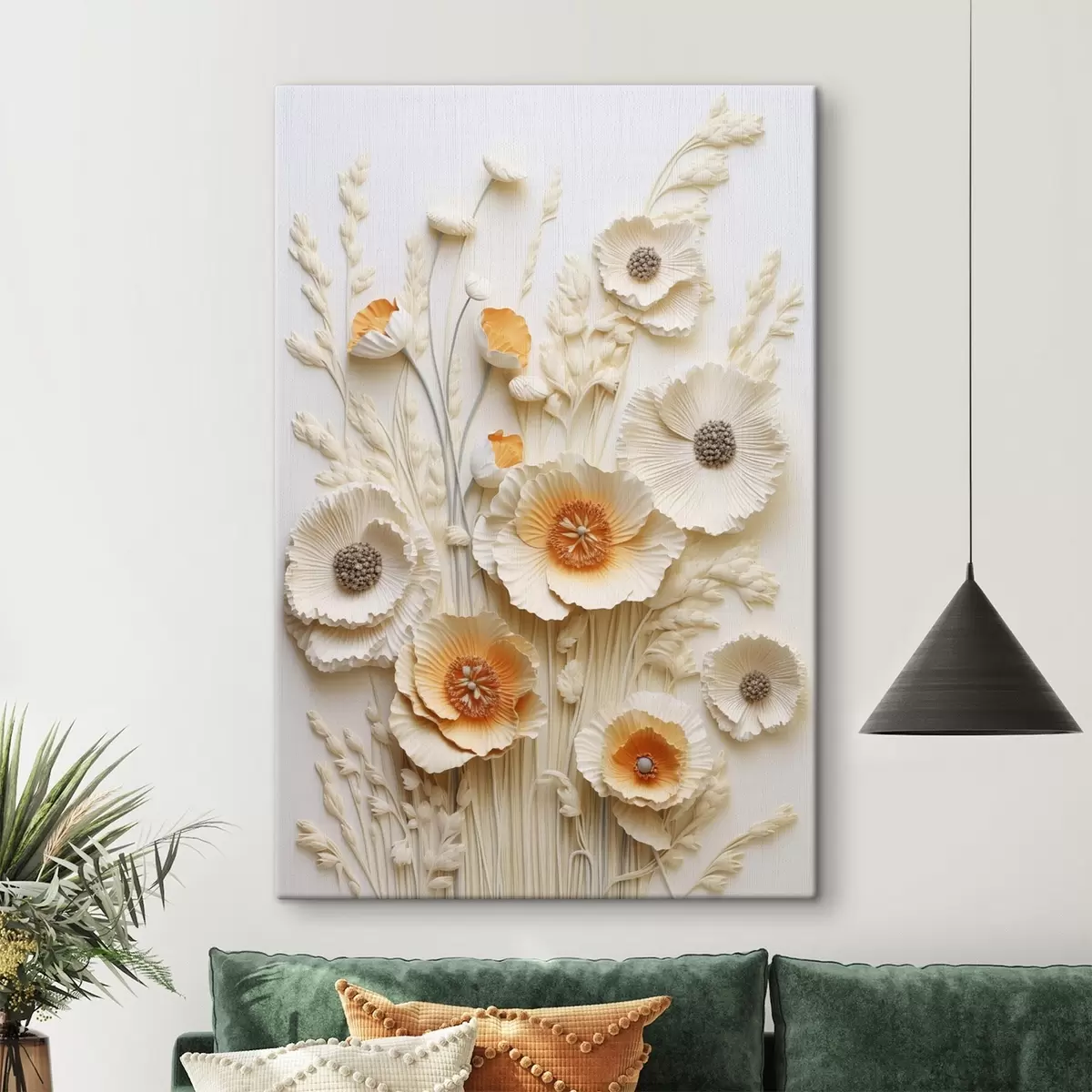 Peinture Un bouquet de coquelicots crème et orange agrémenté de tiges de blé séchées Art. s48747