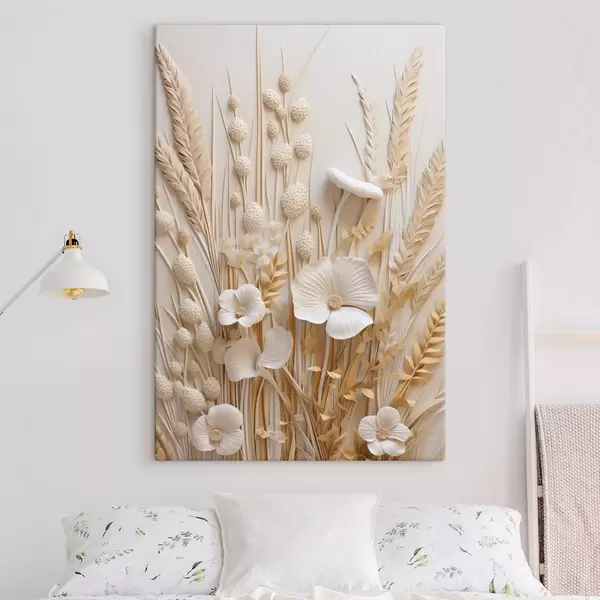 Peinture Un bouquet de coquelicots crème agrémenté de tiges de blé séchées Art. s48748