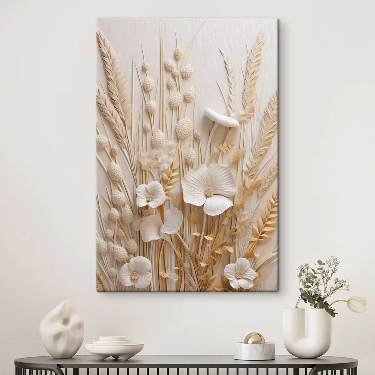 Peintures Un bouquet de coquelicots crème agrémenté de tiges de blé séchées s48748
