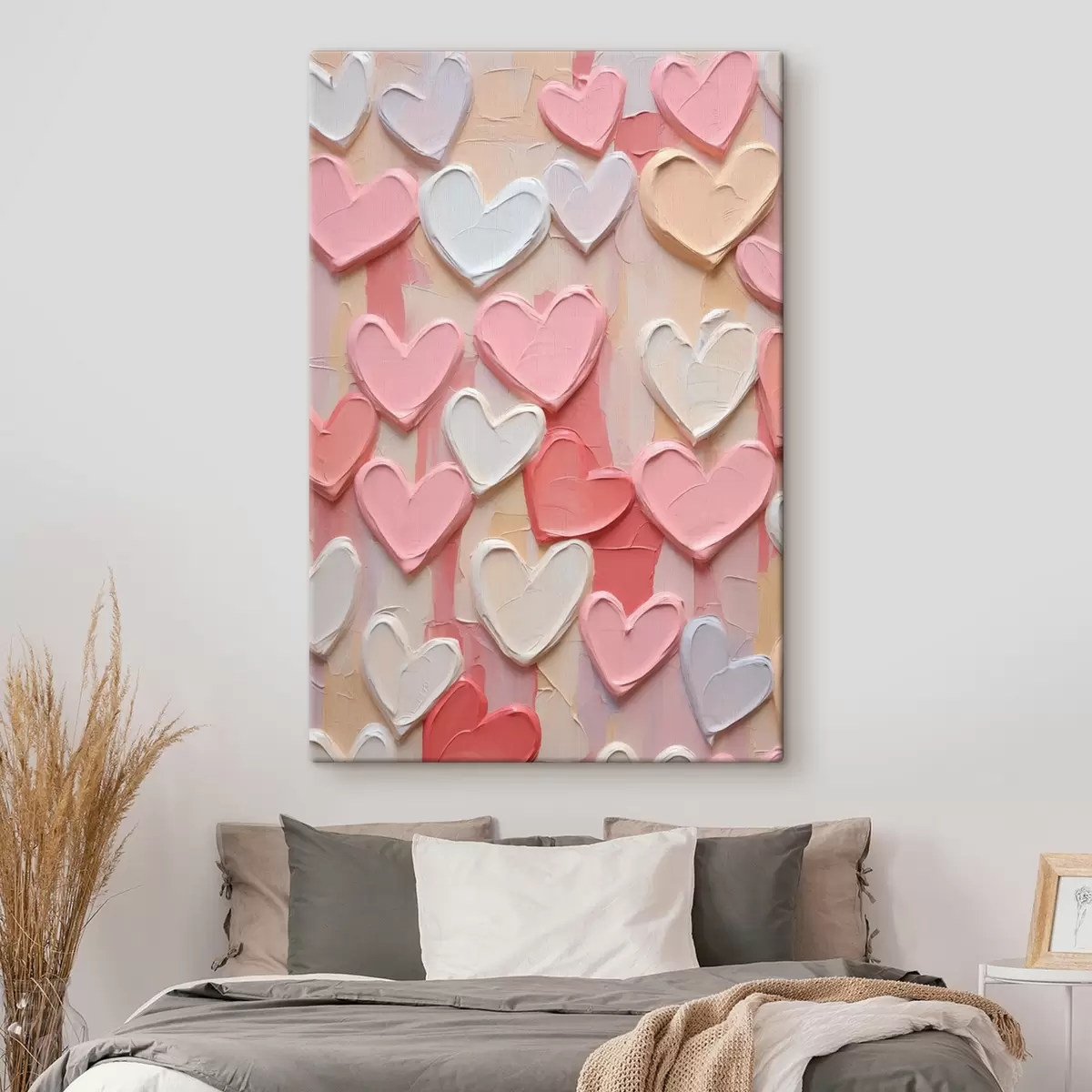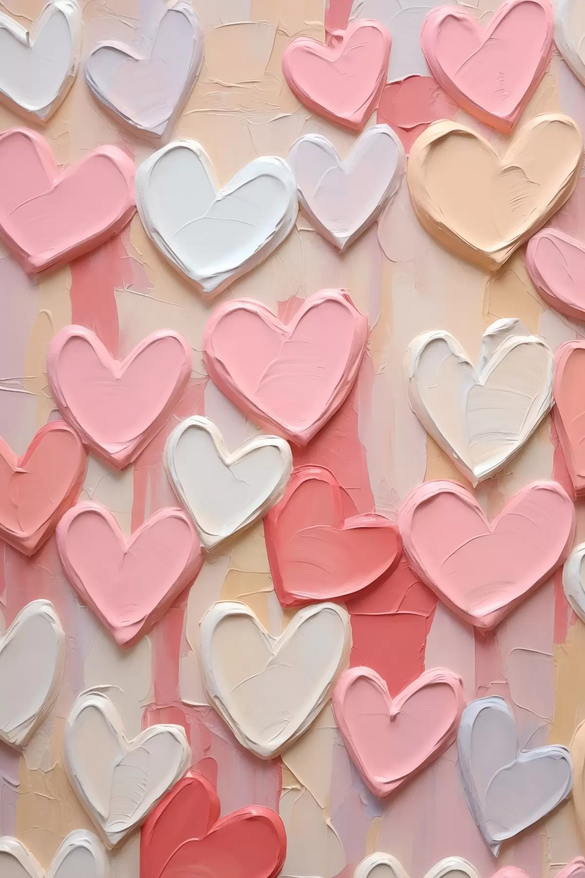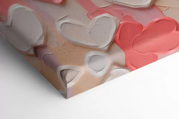 Peinture Des cœurs dans différentes nuances de pêche et de rose, réalisés dans un style texturé et peint Art. s48751