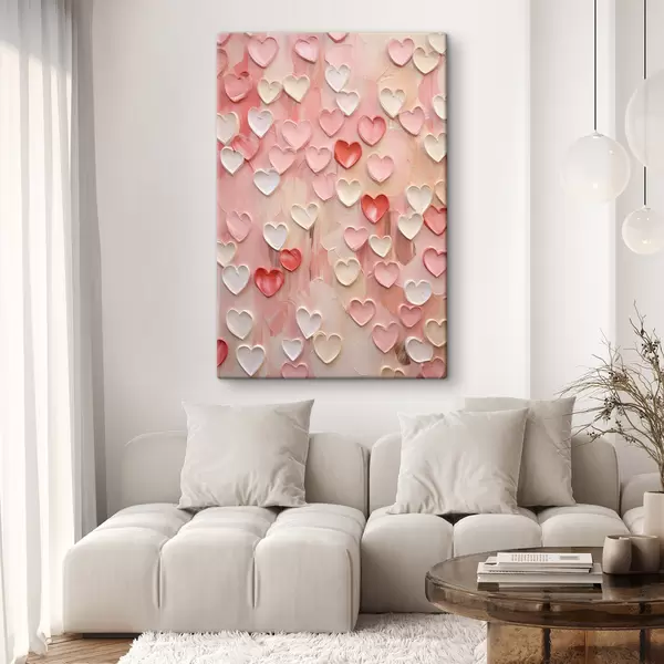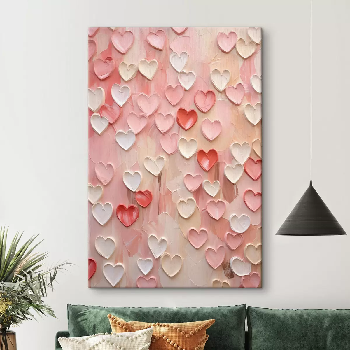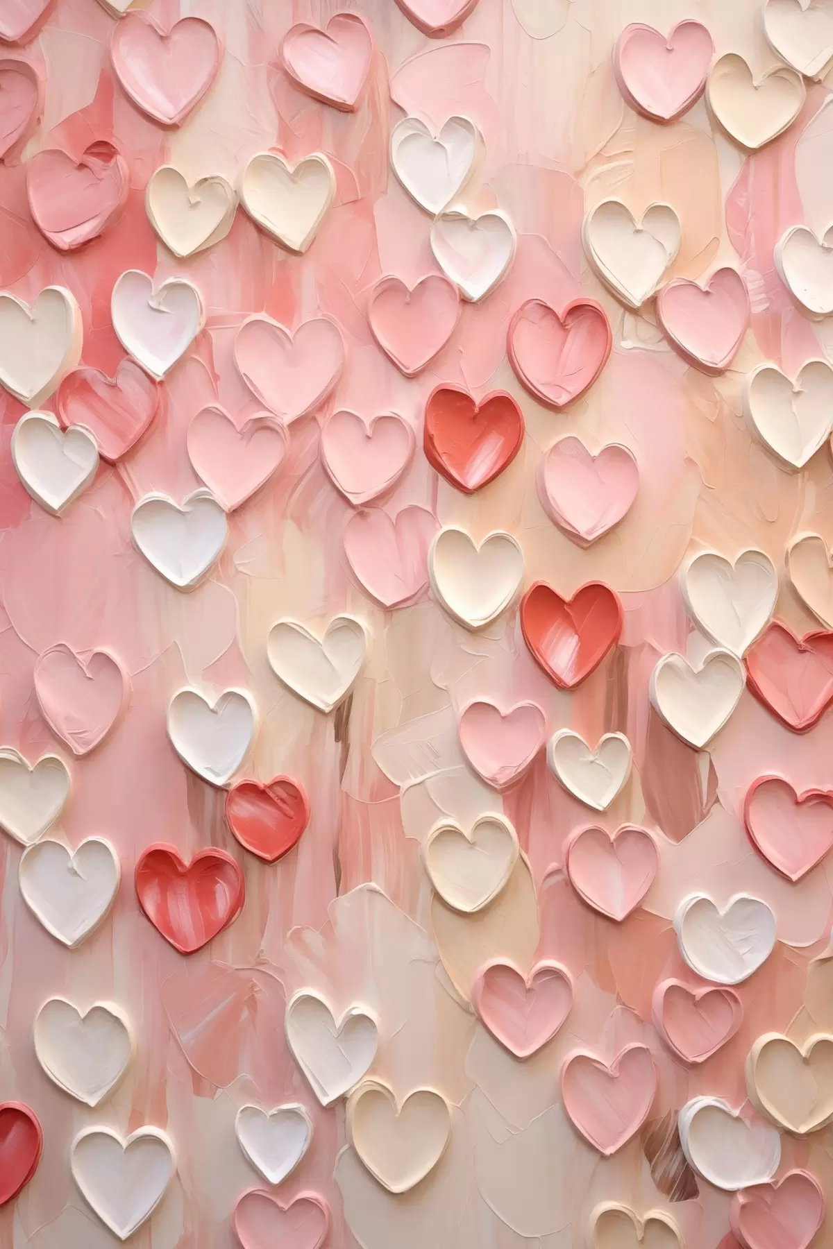 Peinture Des cœurs dans différentes nuances de pêche et de rose, réalisés dans un style texturé et peint Art. s48752