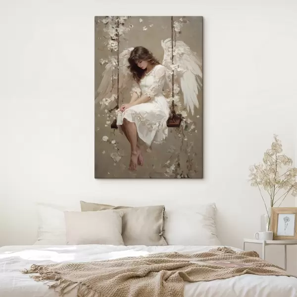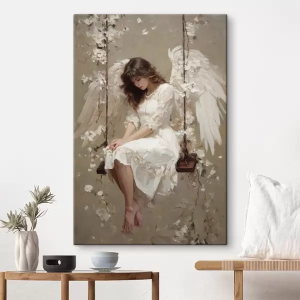 Peintures une petite fille angélique sur une balançoire, peinte dans un style à l'huile s48789