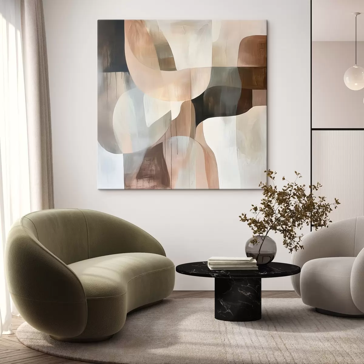 Peinture Composition abstraite dans une palette de tons chauds beige-corail Art. s48859