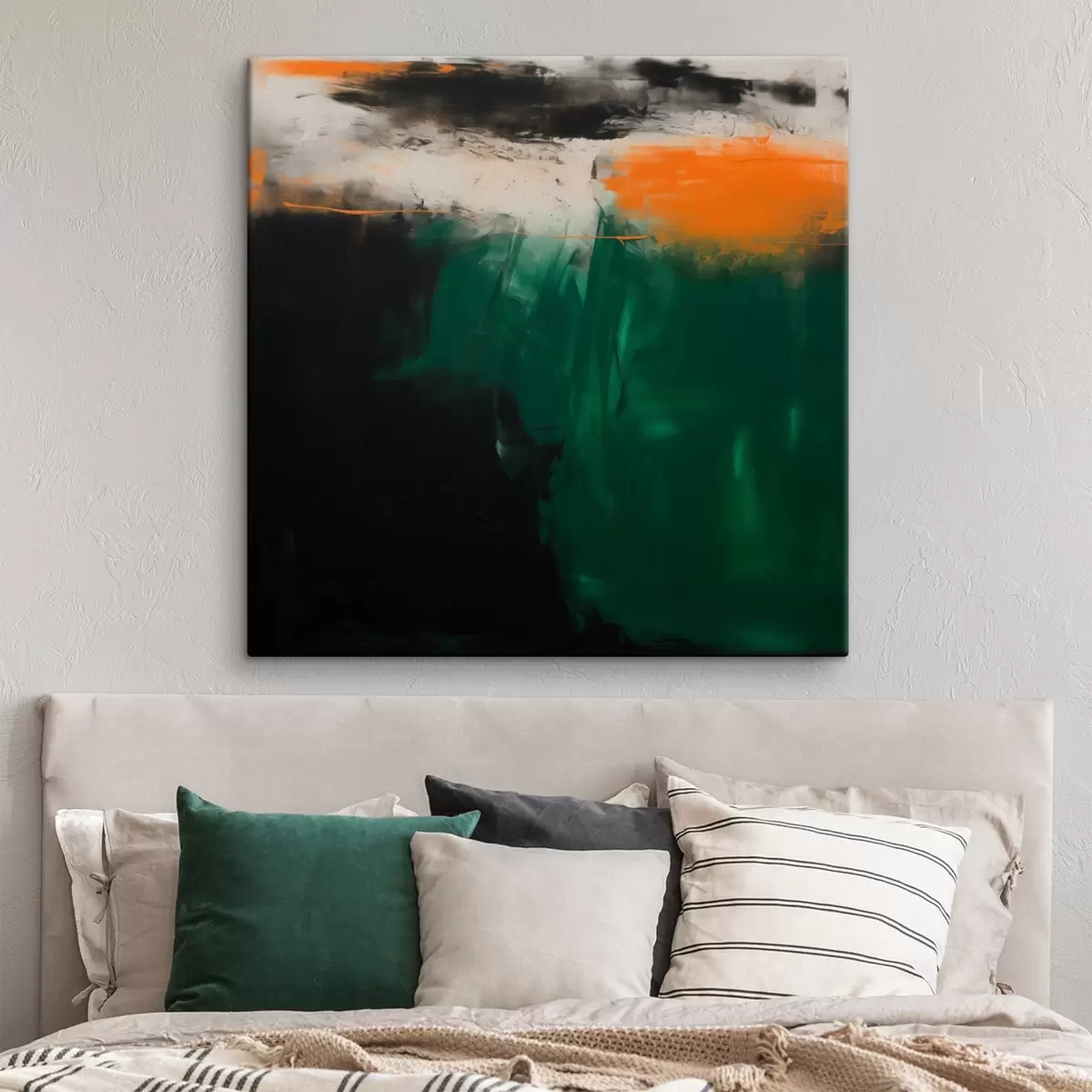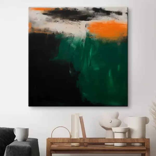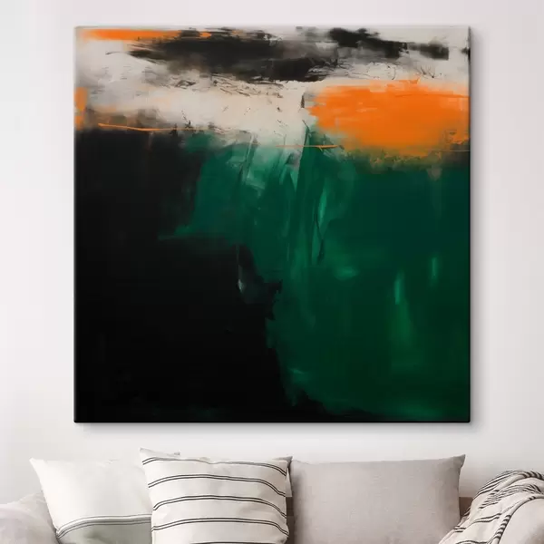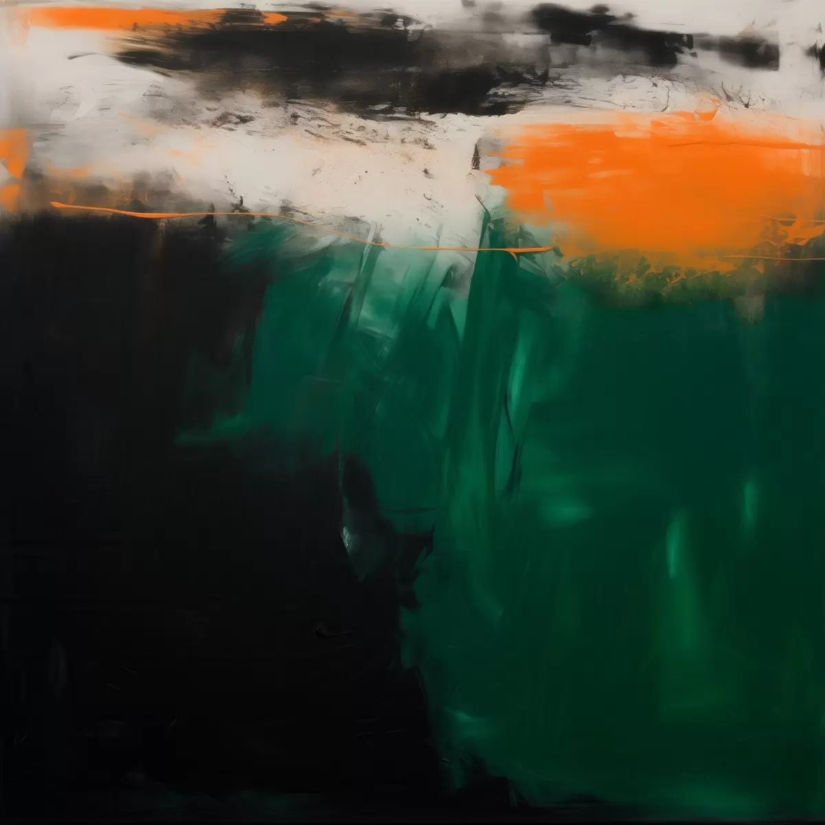Peintures Une œuvre abstraite rehaussée d'une touche d'orange et de touches de vert profond, dans un style pictural contemporain s48865