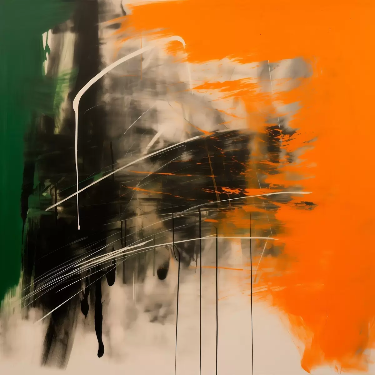 Peinture Une œuvre abstraite aux touches orange et vertes, dans un style pictural contemporain Art. s48866