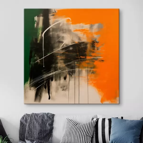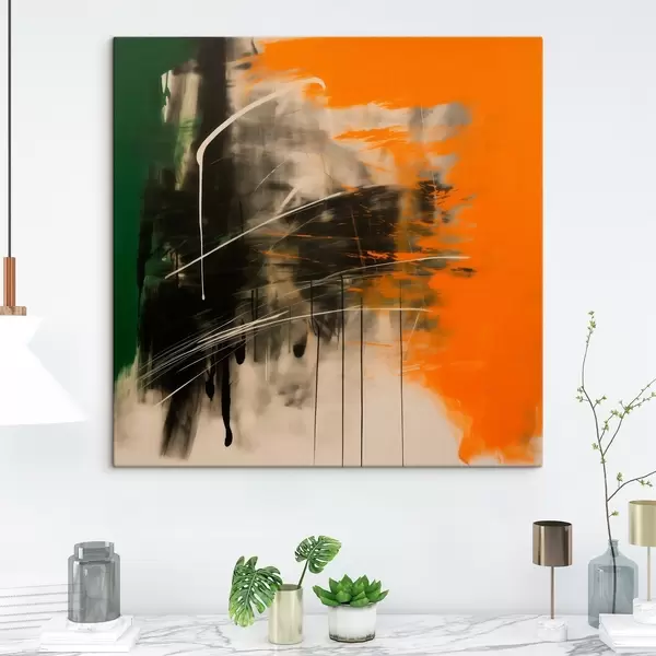 Peintures Une œuvre abstraite aux touches orange et vertes, dans un style pictural contemporain s48866