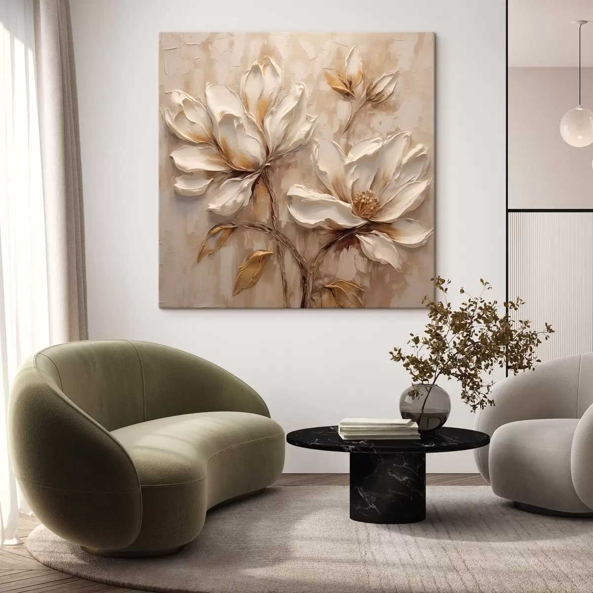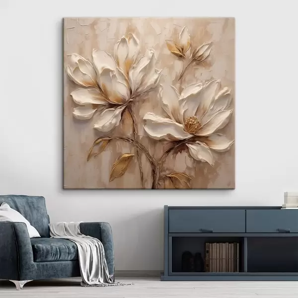 Trois types de matériaux peuvent être commandés : Economic Canvas - matériau dense et durable pour l'impression numérique, identique à la toile de peintre, surface imperméable, reproduction réaliste des détails, matériau à grain moyen. Premium Canvas - la texture ressemble à celle d'une toile de peintre (petits fils entrelacés). Reproduction douce et détaillée de l'image sur une surface mate. Eco-Premium - tissu 100 % coton de haute qualité. Grâce aux fibres naturelles de coton, le matériau est durable et résistant à l'usure. Excellente reproduction des couleurs et des détails.