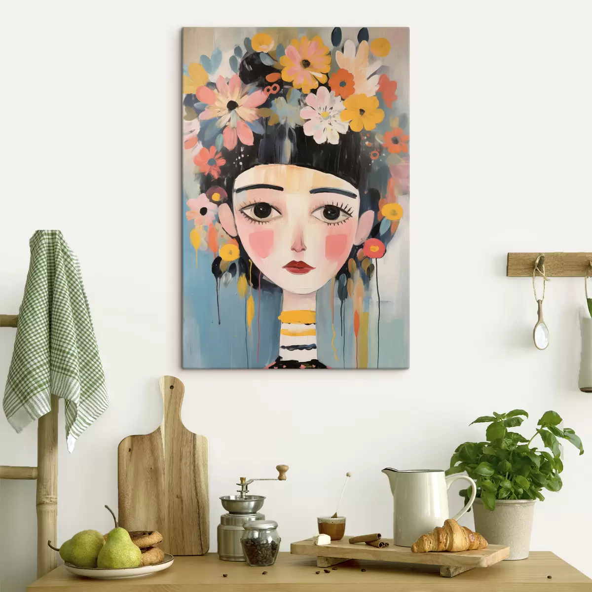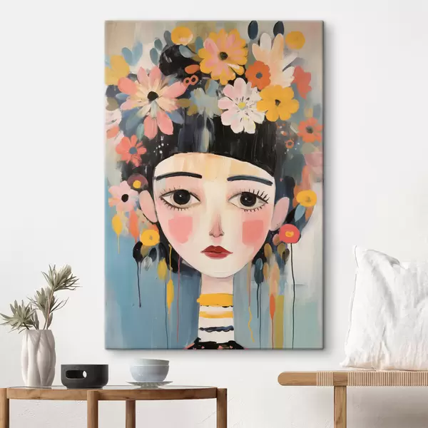 Peintures Portrait d'une femme avec des fleurs dans les cheveux, style abstrait s48935