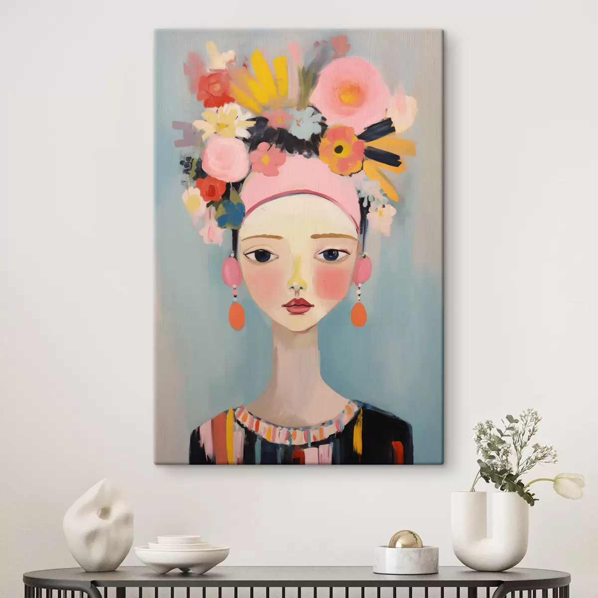 Peintures Portrait d'une femme avec des fleurs dans les cheveux, style abstrait s48936