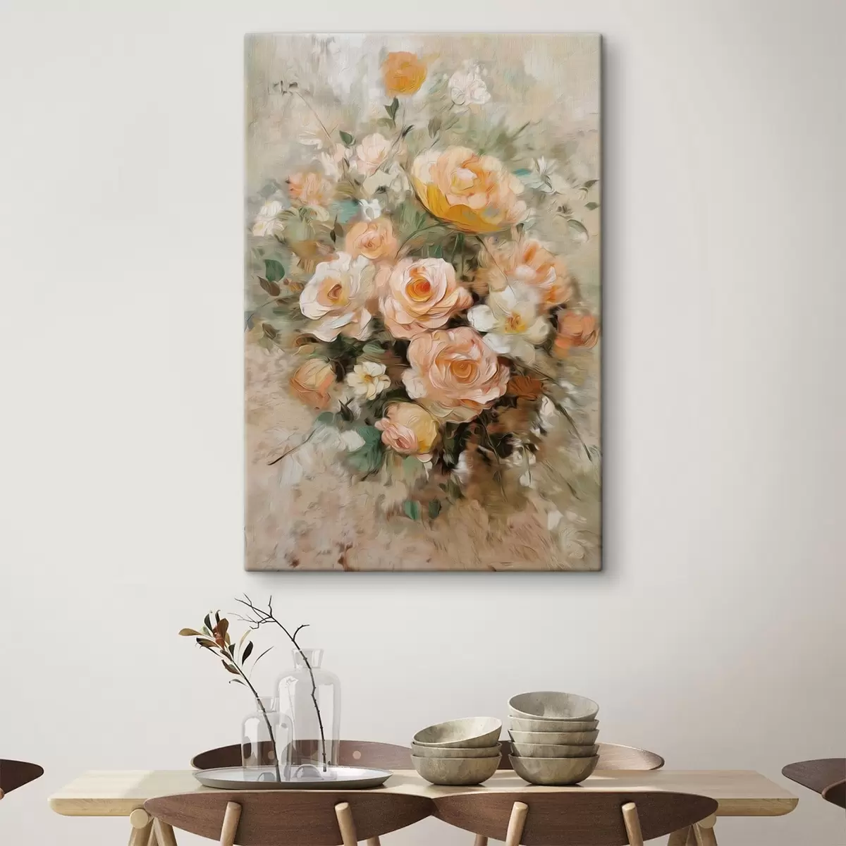 Trois types de matériaux peuvent être commandés : Economic Canvas - matériau dense et durable pour l'impression numérique, identique à la toile de peintre, surface imperméable, reproduction réaliste des détails, matériau à grain moyen. Premium Canvas - la texture ressemble à celle d'une toile de peintre (petits fils entrelacés). Reproduction douce et détaillée de l'image sur une surface mate. Eco-Premium - tissu 100 % coton de haute qualité. Grâce aux fibres naturelles de coton, le matériau est durable et résistant à l'usure. Excellente reproduction des couleurs et des détails.
